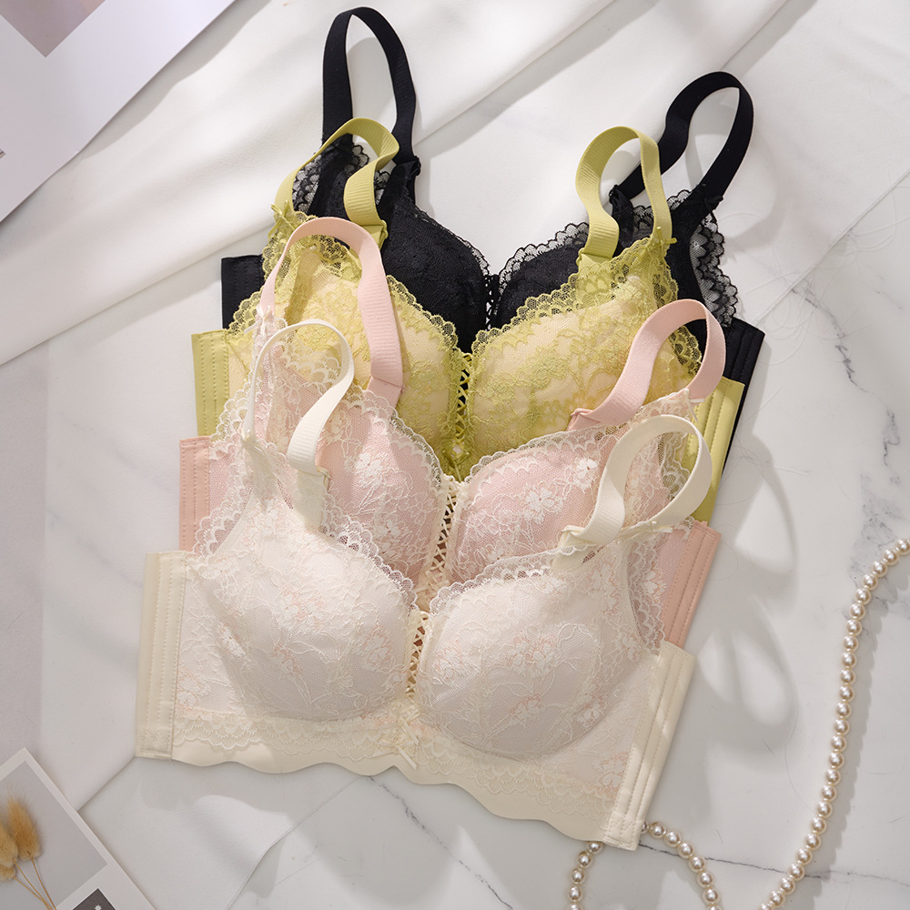 Style Romantic French Light Luxury Lace Push-up Bra Top Support Side Breast Adjustment Type