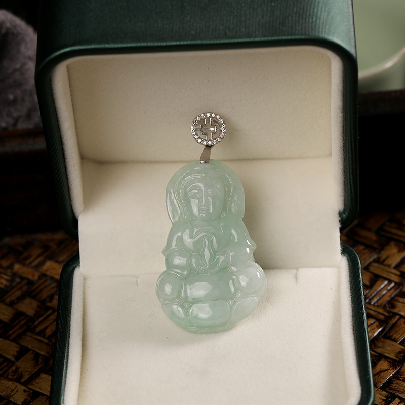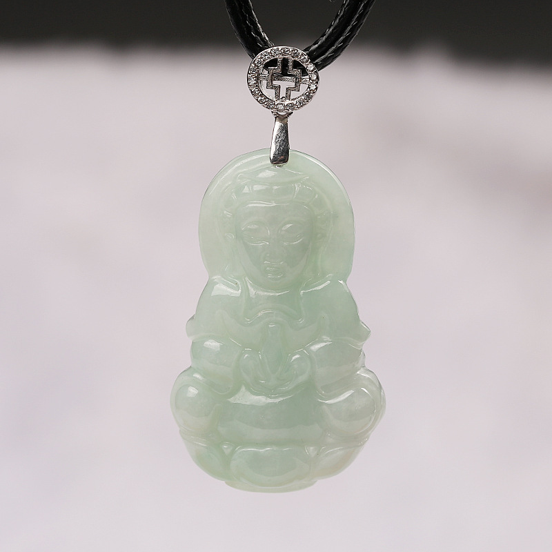 Chinese Style Jadeite Guanyin Pendant For Men And Women,Natural A-grade Waxy Guanyin Jade Pendant S925 Silver Buckle Clavicle Necklace