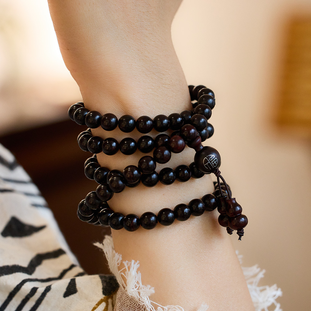 Natural Indian Red Sandalwood Bracelet Full Of Gold Stars,High-density Old Material,108 Rosary Beads,Men's And Women's Wooden Bracelets