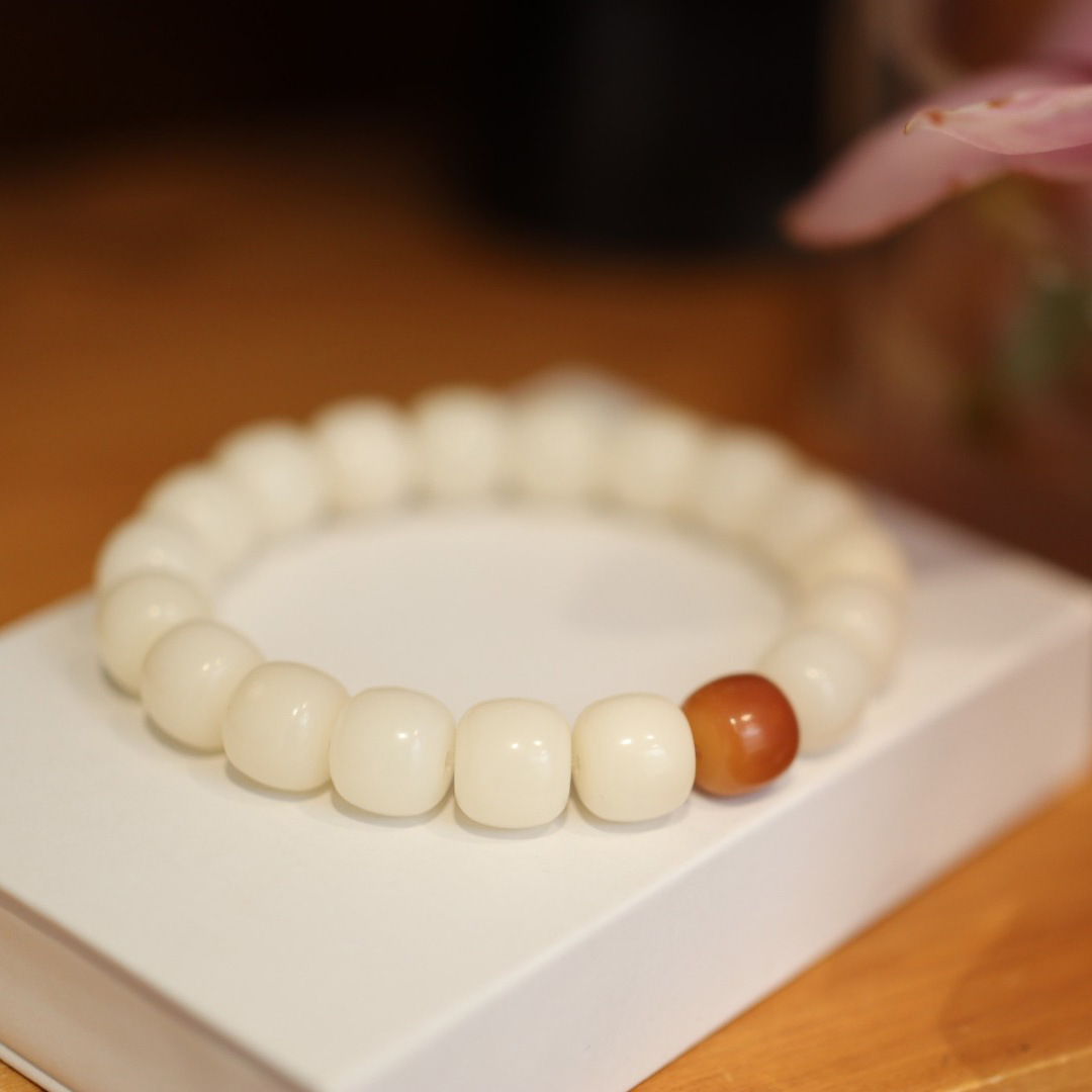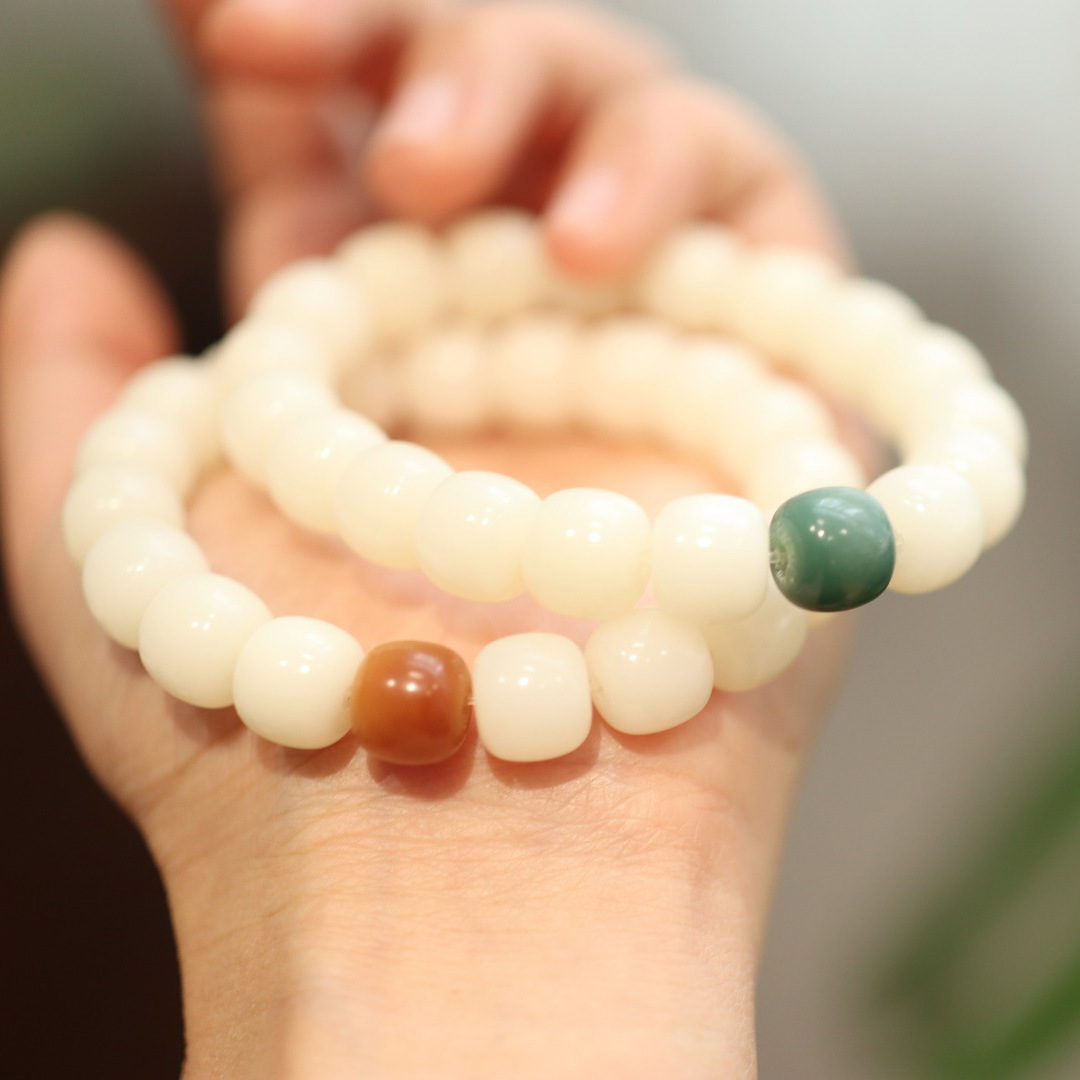 Natural White Jade Bodhi Bracelet White Bodhi Root Old Type Weathered Beads Bodhi Seed Buddha Beads Cultural Toy Rosary Bracelet For Men And Women