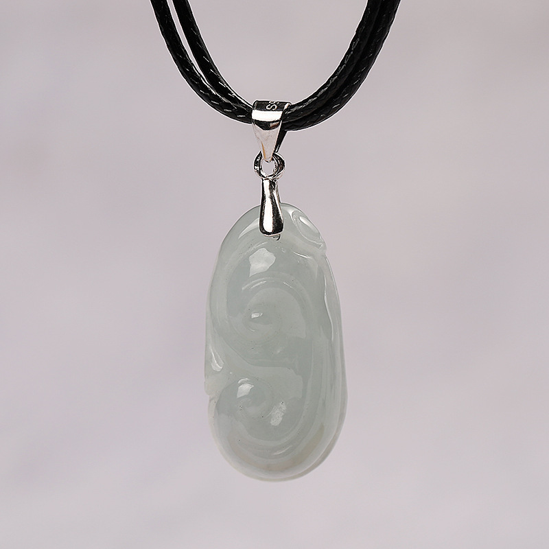 Chinese Style Jadeite Ruyi Pendant Women's Natural A-grade Waxy Ruyi Jade Pendant S925 Silver Buckle Clavicle Necklace