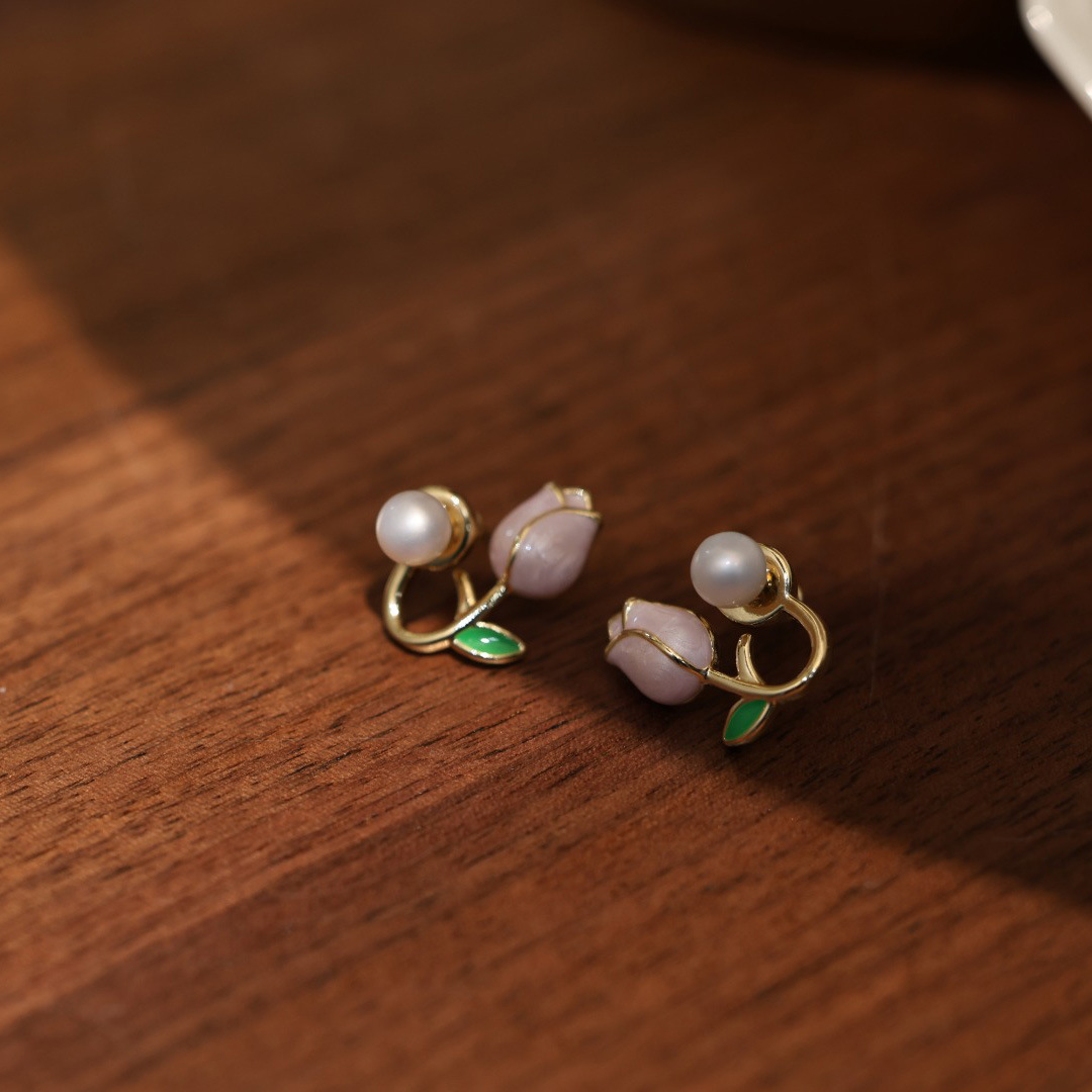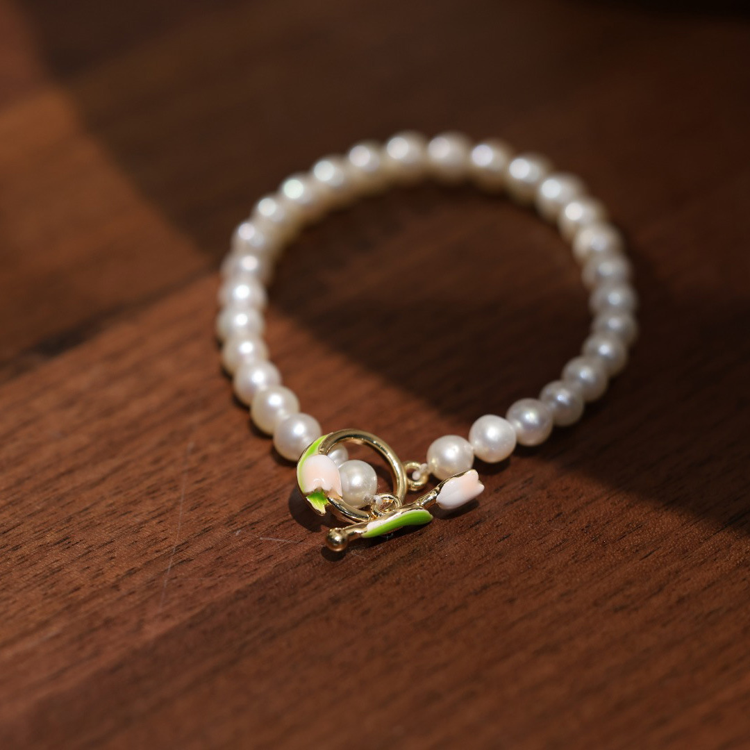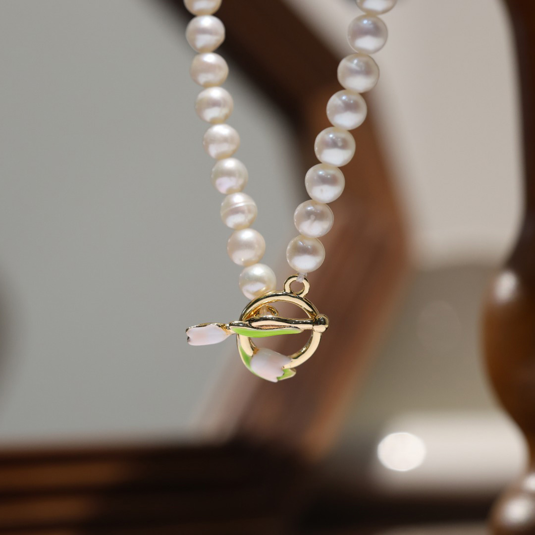 Pink Tulip Natural Freshwater Pearl Necklace Romantic Handmade Beaded Necklace Bracelet Earrings Mother's Day Set