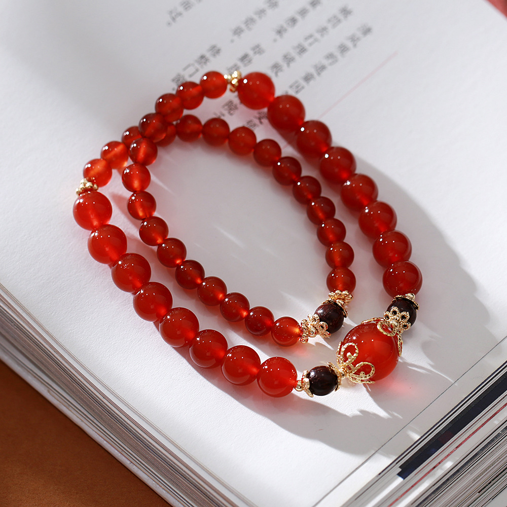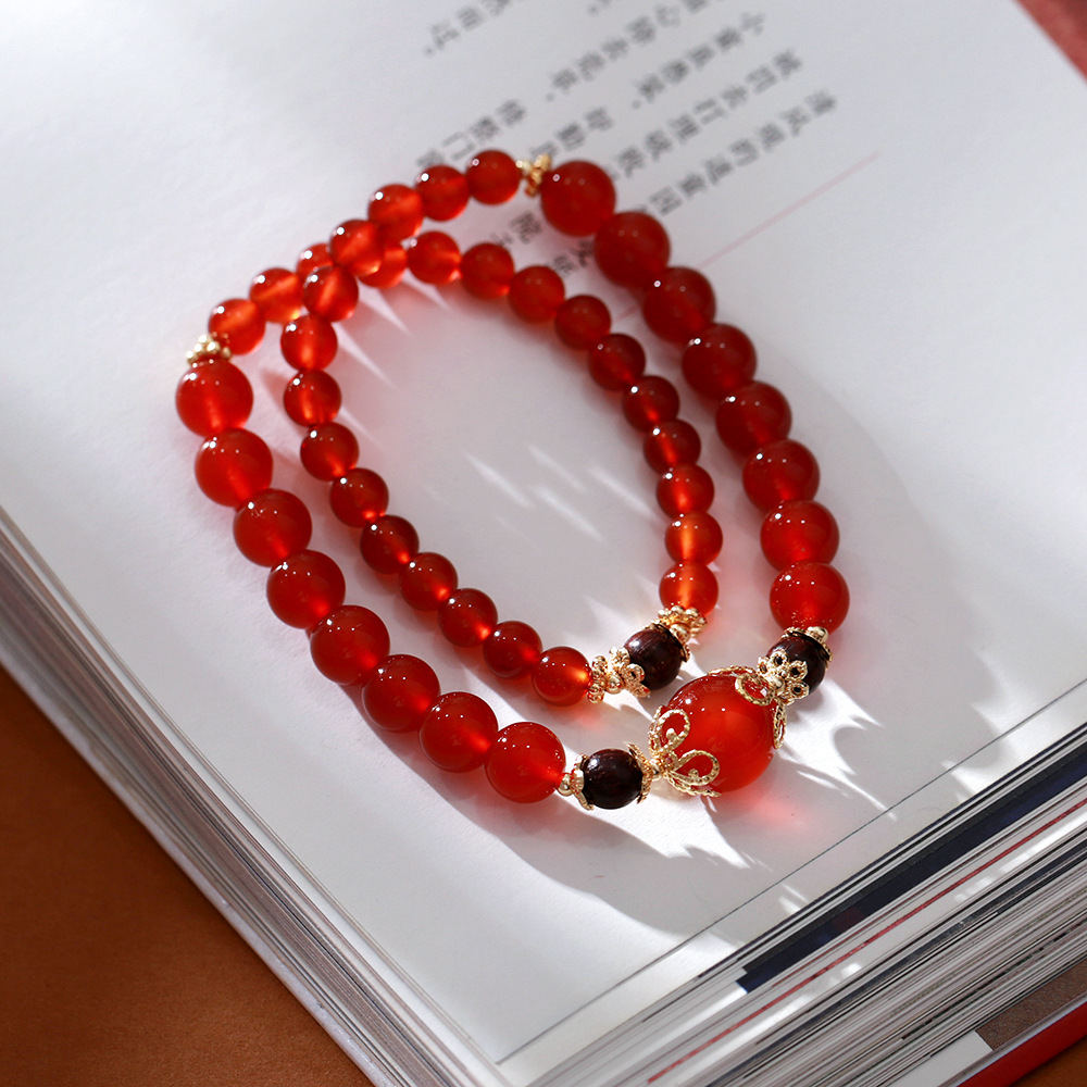 Chinese Style Natural Red Agate Bracelet For Women's Birth Year Chalcedony Agate Multi-circle Crystal Bracelet For Men And Women