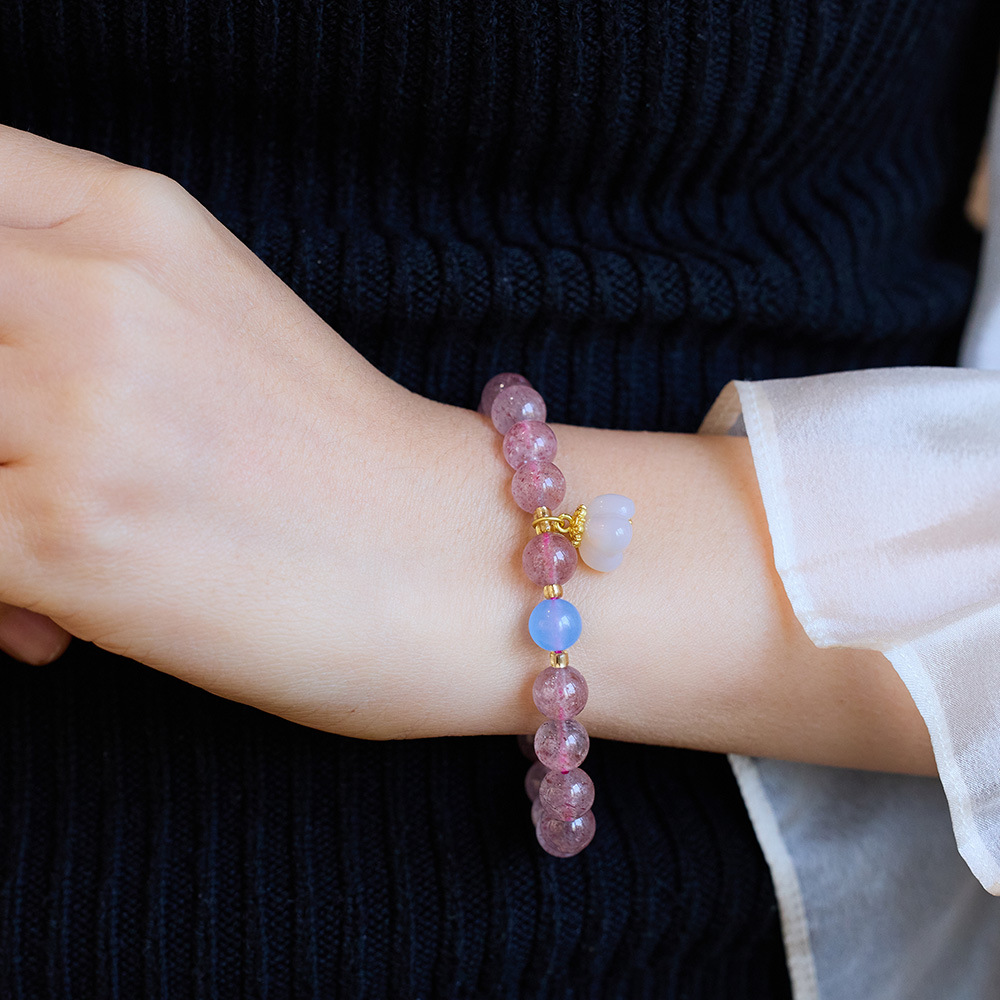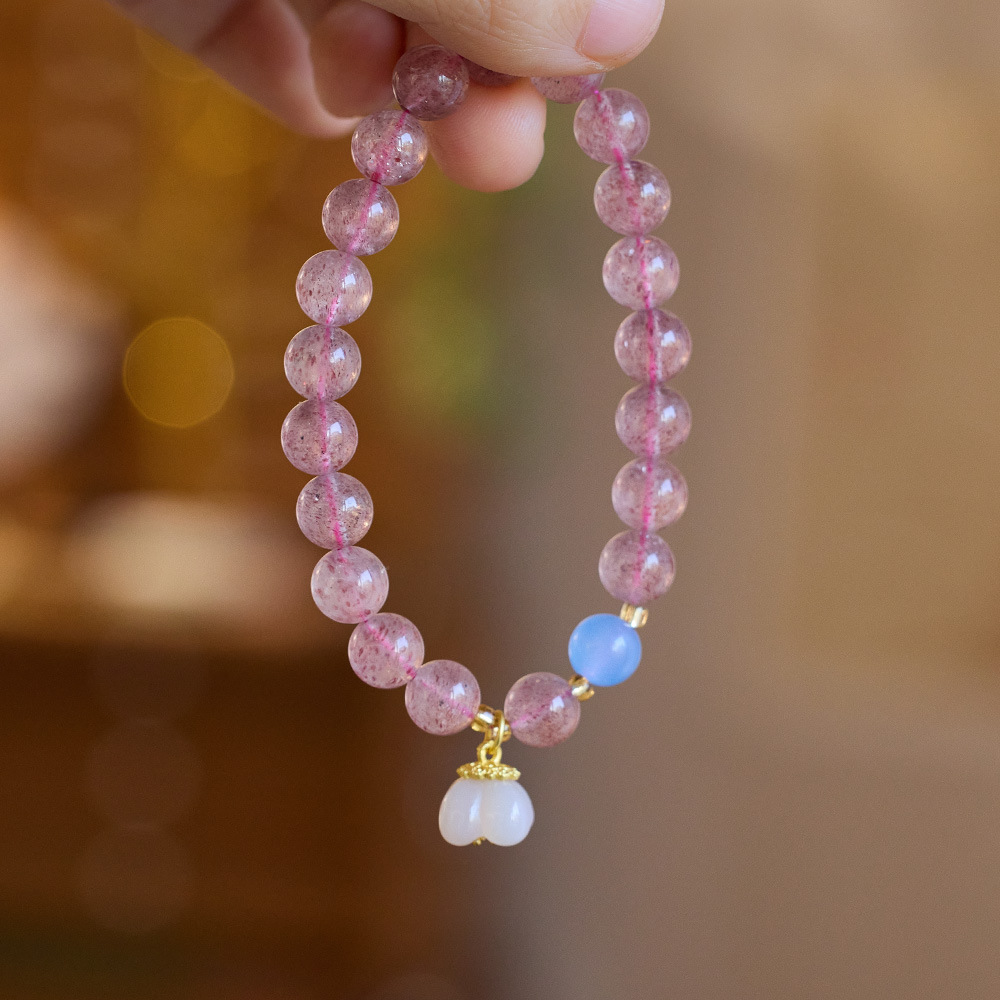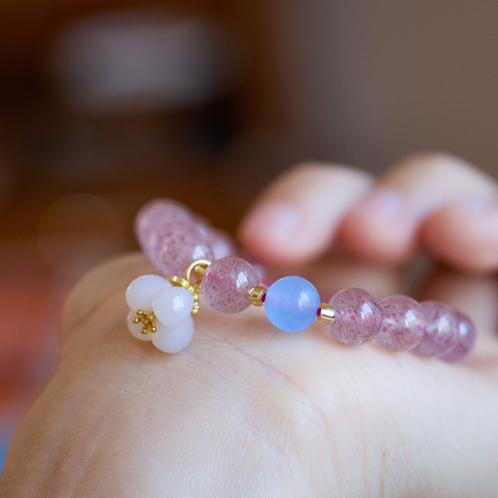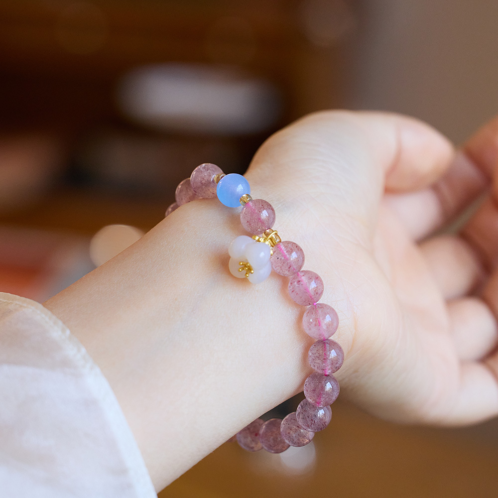 Natural Strawberry Crystal Bracelet For Women,Agate Rich Flower Bracelet,Pigeon Blood Red Peach Blossom High-end Bracelet
