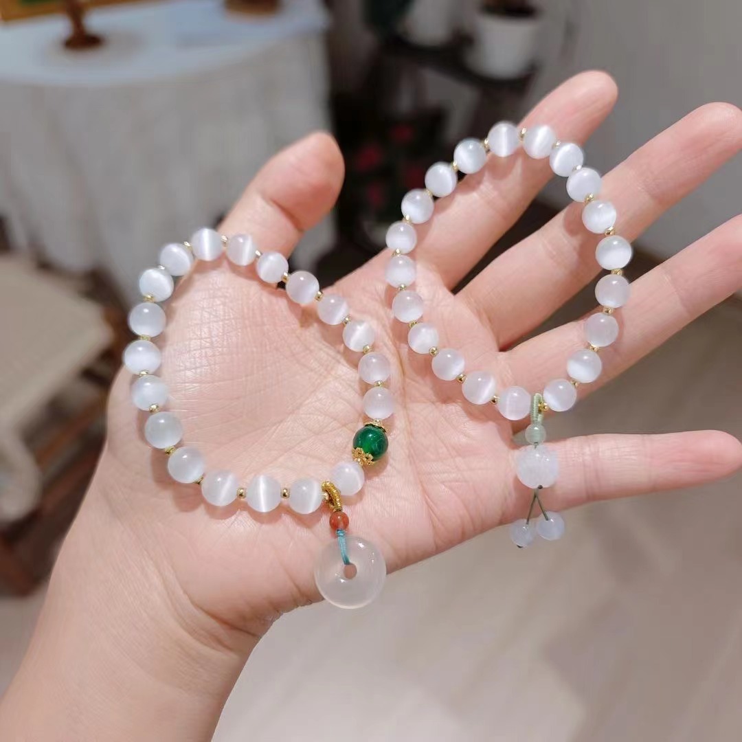 National Cat's Eye Stone Beaded Bracelet For Women Niche Design Safety Buckle Lotus Pendant Bead Bracelet Hand Jewelry