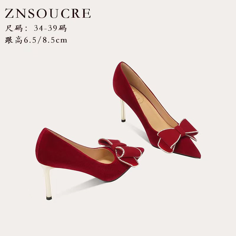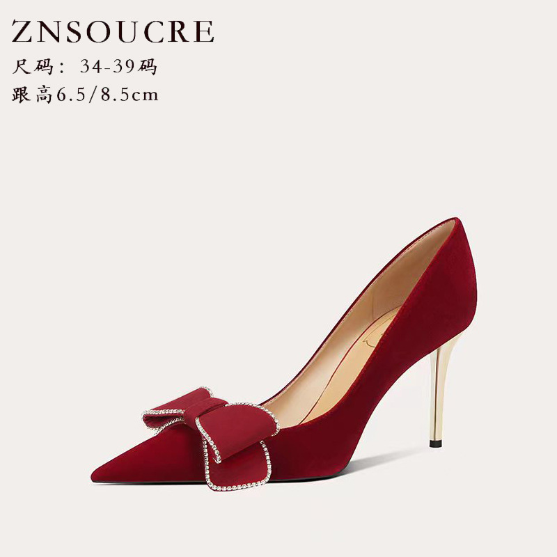 708-A32 Toasting Shoes Red Suede Sheepskin High Heels Women's Wedding Xiuhe Wedding Shoes Chinese Wedding Bridal Shoes