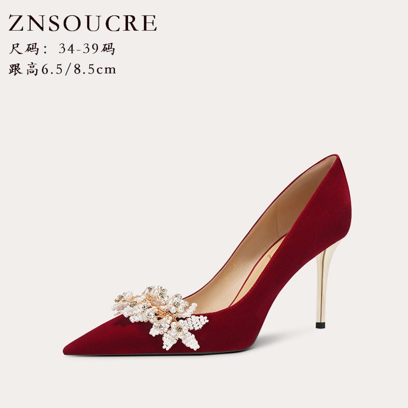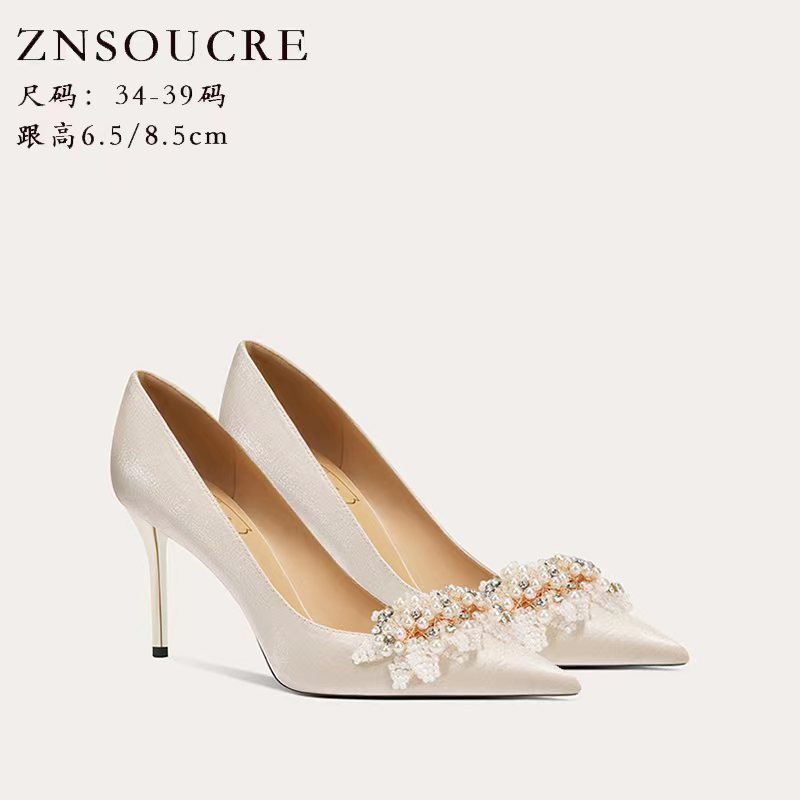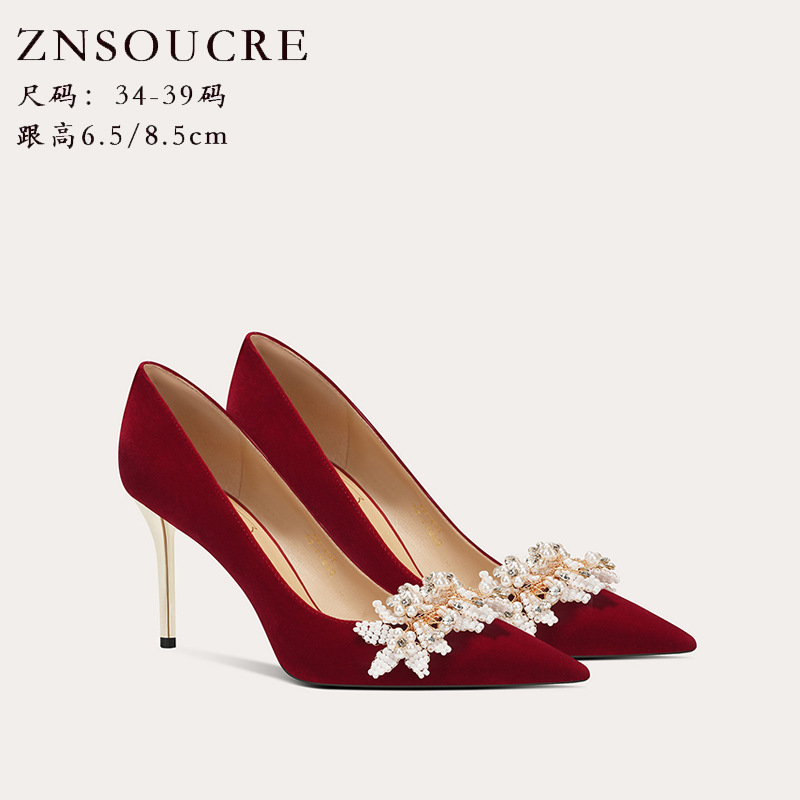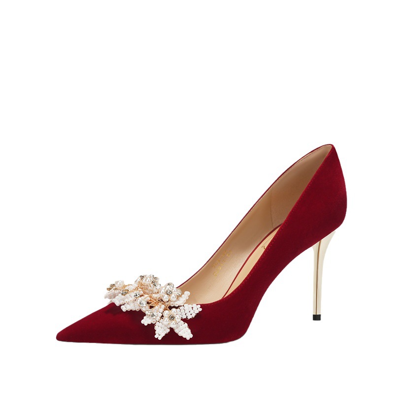 708-31 Chinese Style Wedding Shoes,Crystal High Heels,Niche Style,Ladies’French Style Sheepskin Single Shoes
