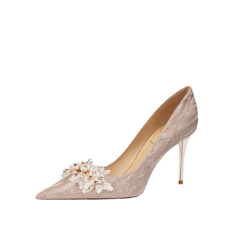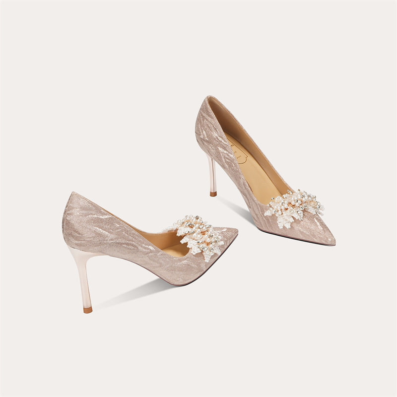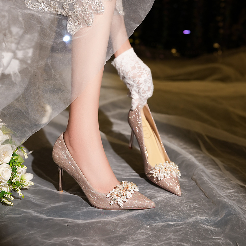 708-25 Sheepskin Wedding Shoes Wedding Shoes Women Xiuhe Two-wear High Heels Stiletto Bridal Shoes Pointed Toe Single Shoes