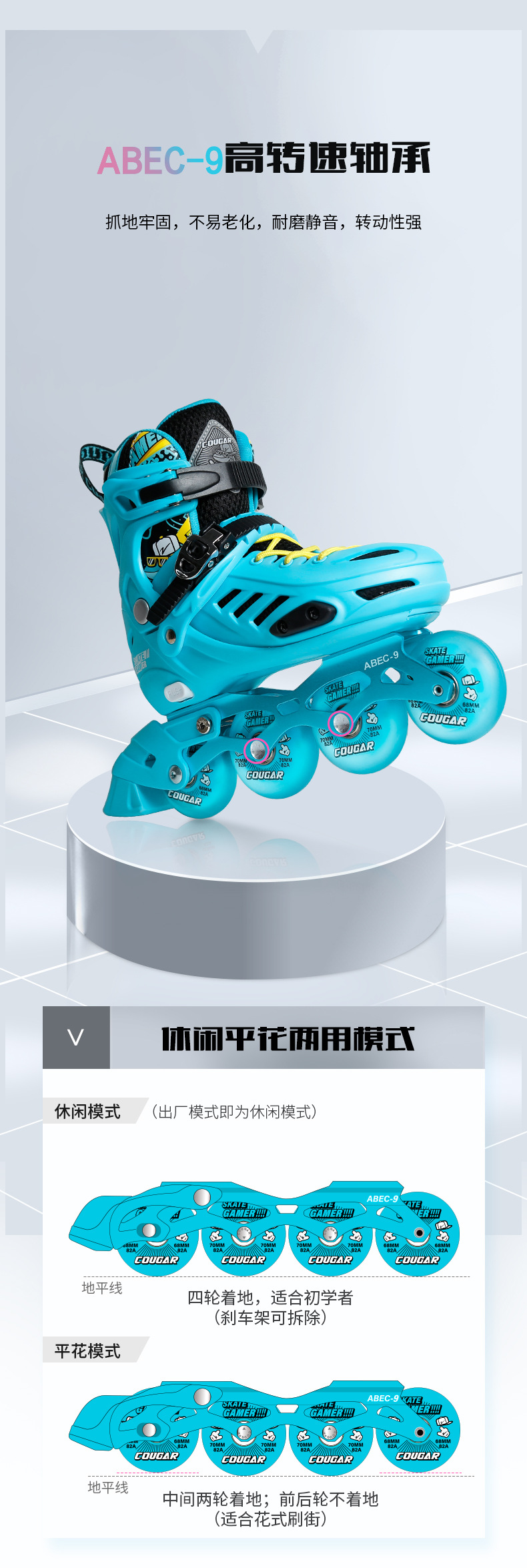 MS333 Cougar Skates Children's Full Set Of Roller Skates Flat Shoes Professional Roller Skates Skates For Beginners