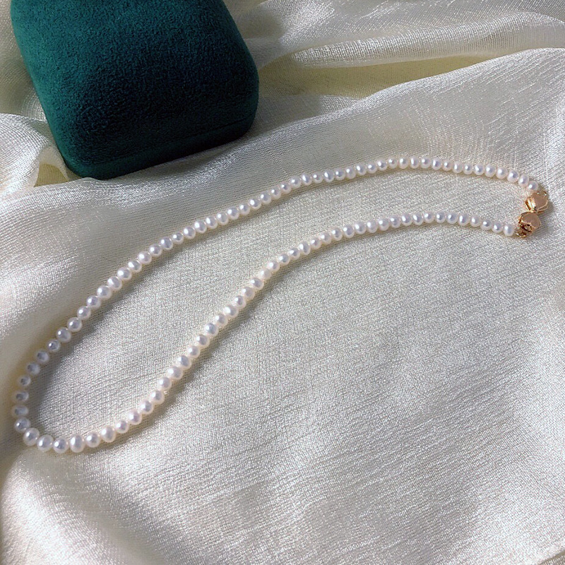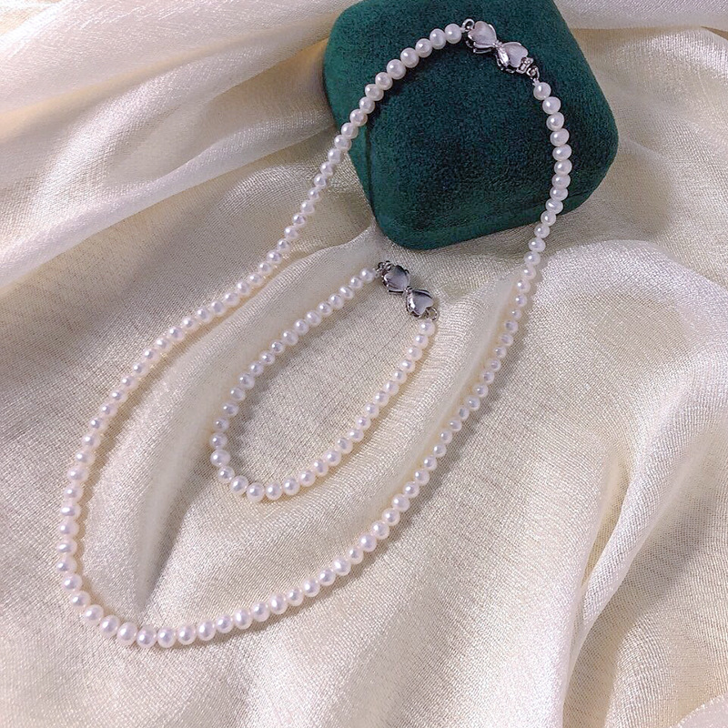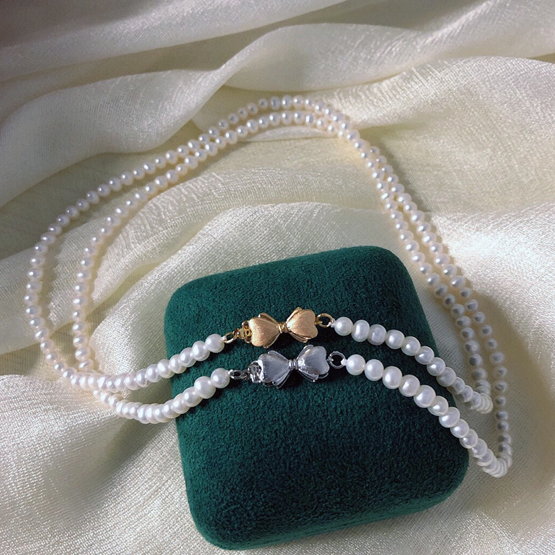 Natural Freshwater Pearl Jewelry Set Autumn And Winter Simple Frosted Bow Bracelet Necklace Two-piece Set