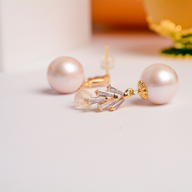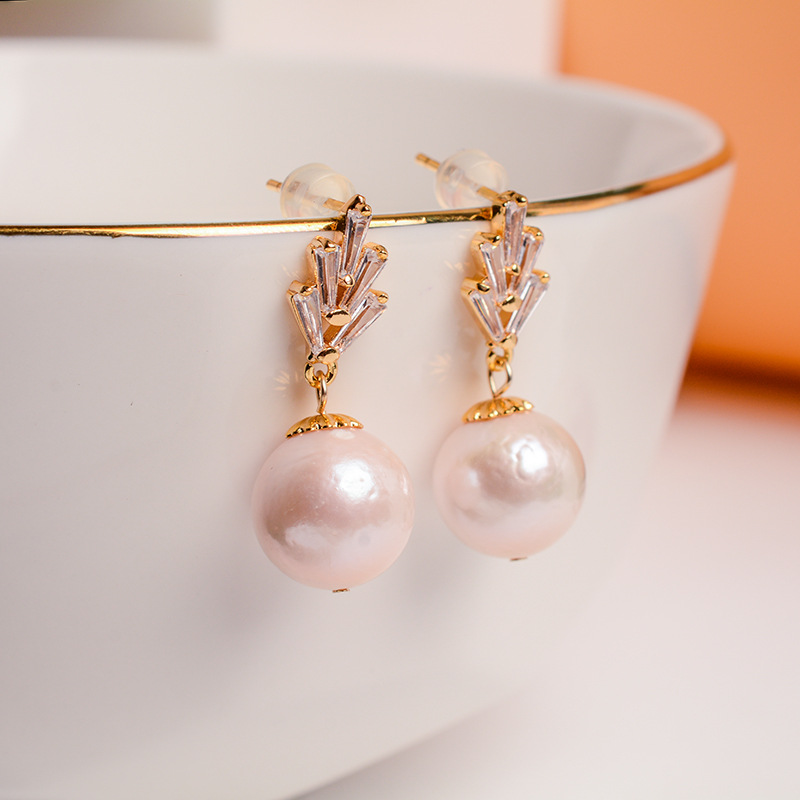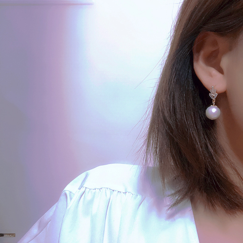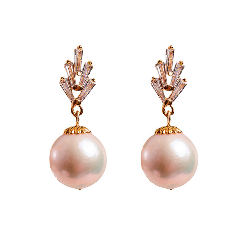 Simple Temperament Baroque Natural Freshwater Pearl Earrings925 Sterling Silver Ear PMicro-encrusted Zircon Crown Earrings For Women
