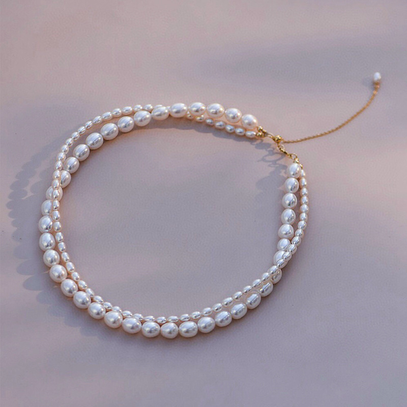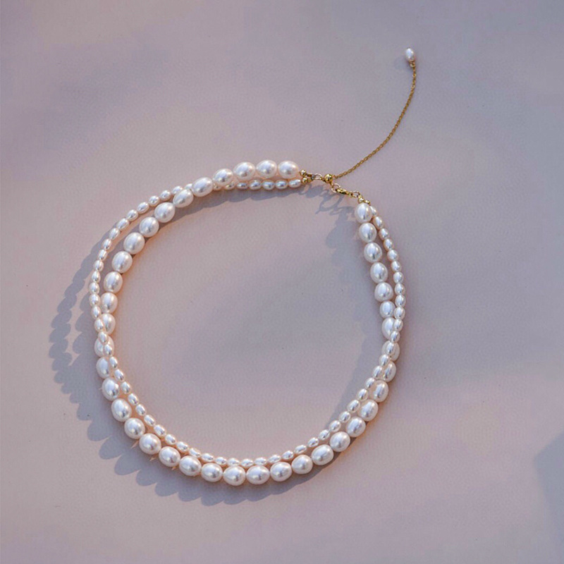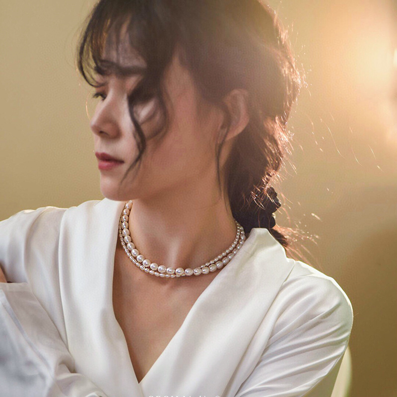 French High-grade Natural Freshwater Pearl Necklace Female Double-layer Stacking Choker Necklace Style