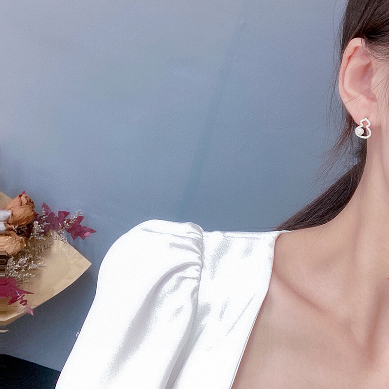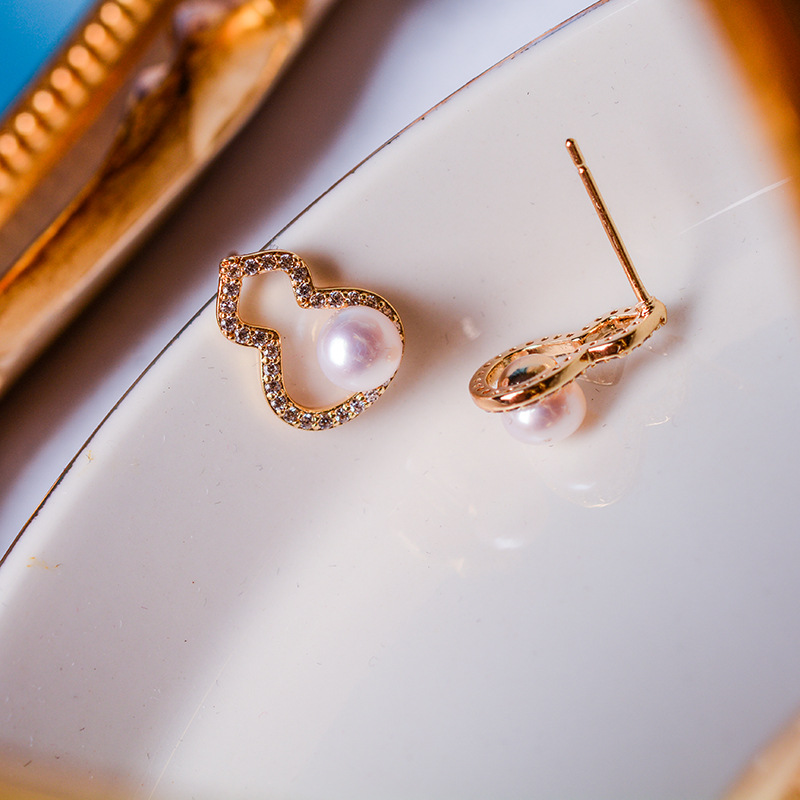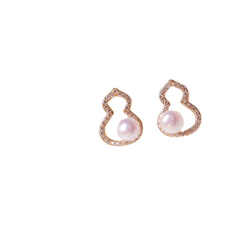 French Simple Full-diamond Zircon Gourd Earrings Niche High-end14k Gold-infused Natural Freshwater Pearl Earrings