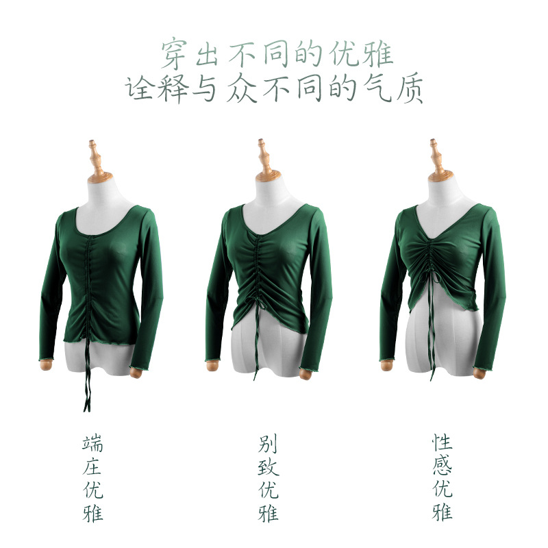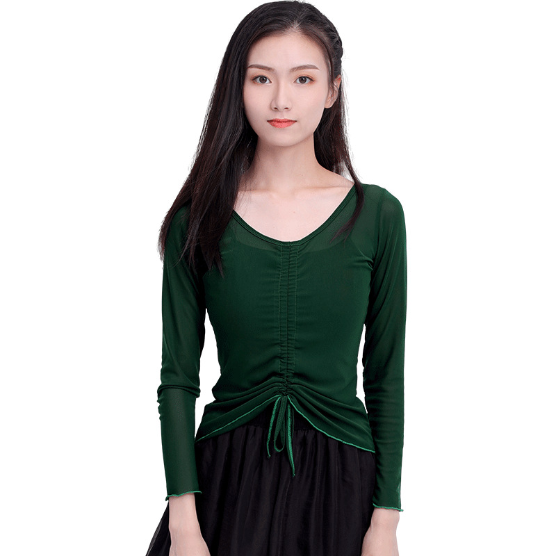 Adult Classical Dance Gauze Body Ballet Dance Practice Clothing Art Test Mesh Modern Dance Drawstring Blouse Top