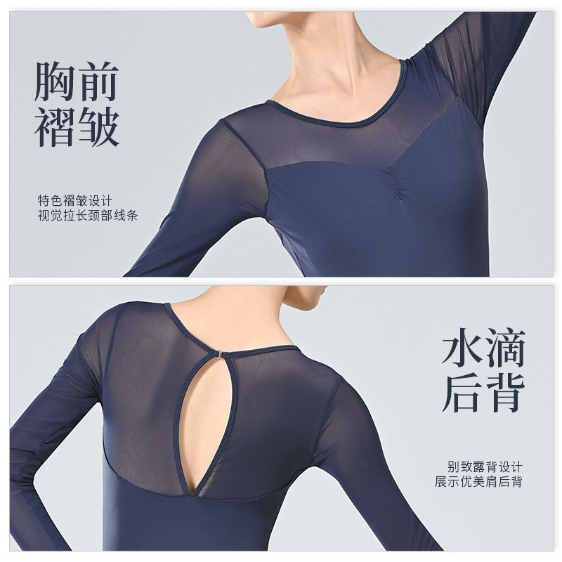 Ballet Practice Clothes One-piece Dance Gymnastics Tops For Women Adult Nylon Long-sleeved Teacher Art Exam Training Clothes
