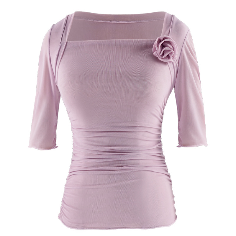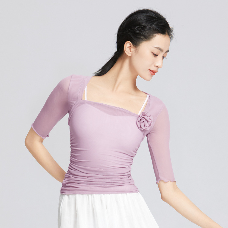 Ballet Dance Clothing Practice Blouse Gymnastics Stretch Mesh Mid-sleeve Adult Female Classical Dance Gauze Top Body Suit