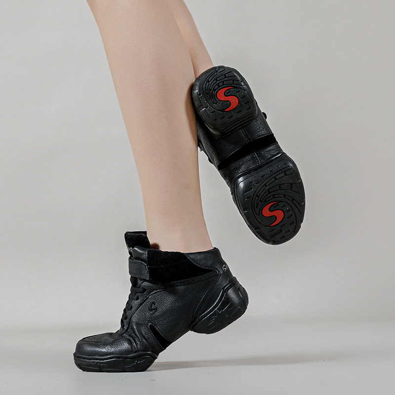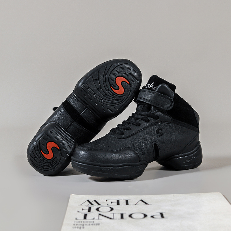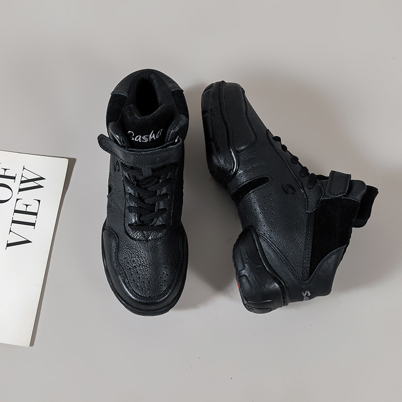 Jazz Modern Dance Shoes For Children And Girls Soft Sole Practice Cowhide Square Dance Black Dance Shoes