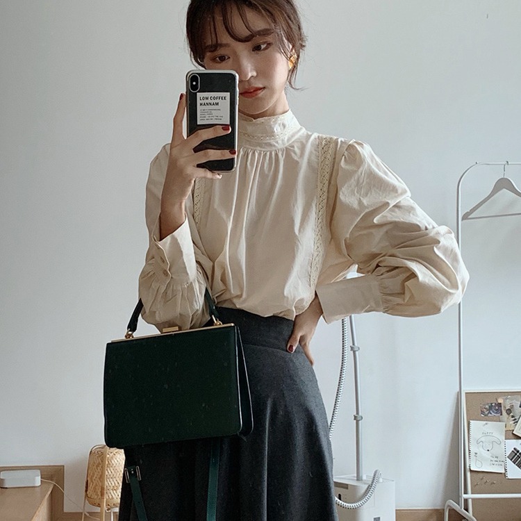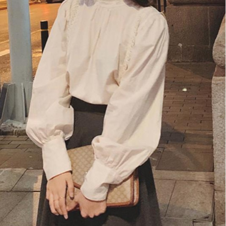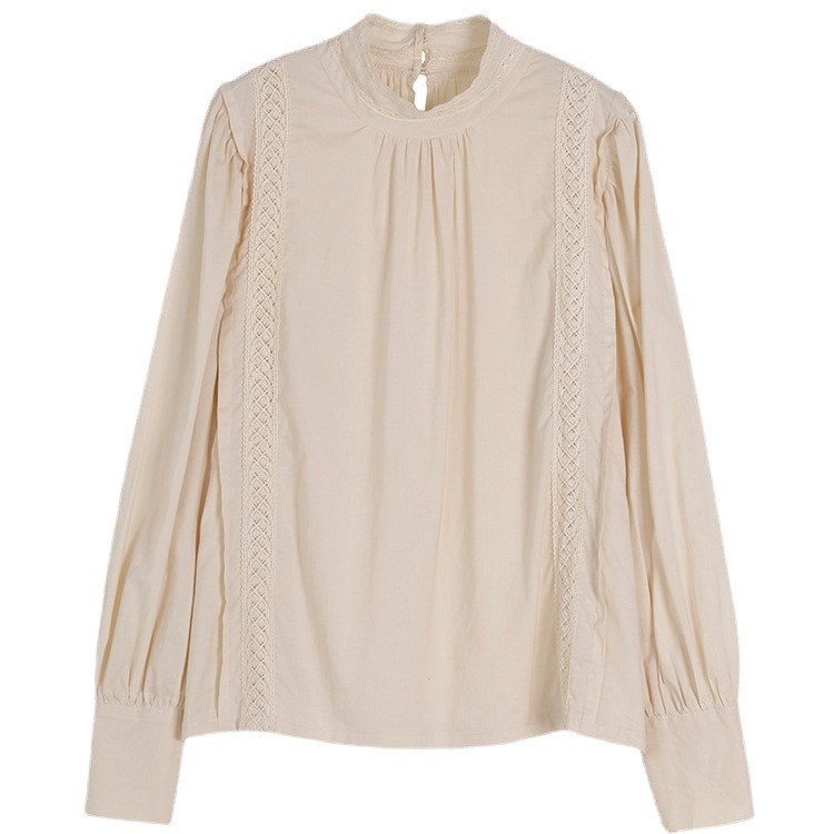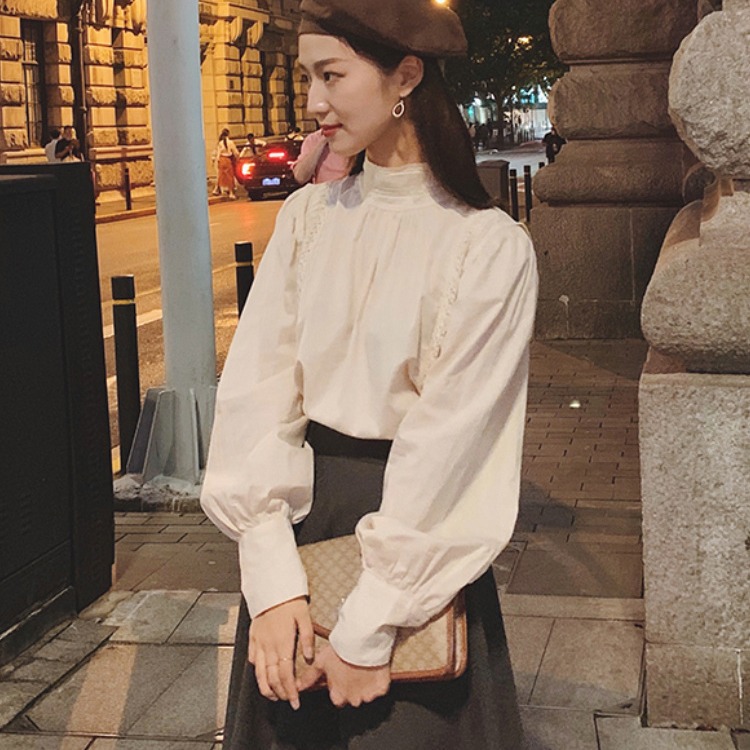 Spring And Autumn Inner Wear Lace Shirt Women's Fashionable Bottoming Top Long Sleeve Small Shirt Mesh Puff Sleeve Half High Collar Super Fairy Shirt