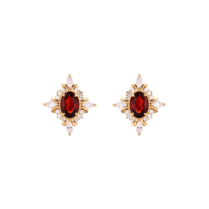 Retro High-end Cross Star Earrings For Women Natural Garnet Zircon Earrings925 Silver Red Pomegranate Ring Set