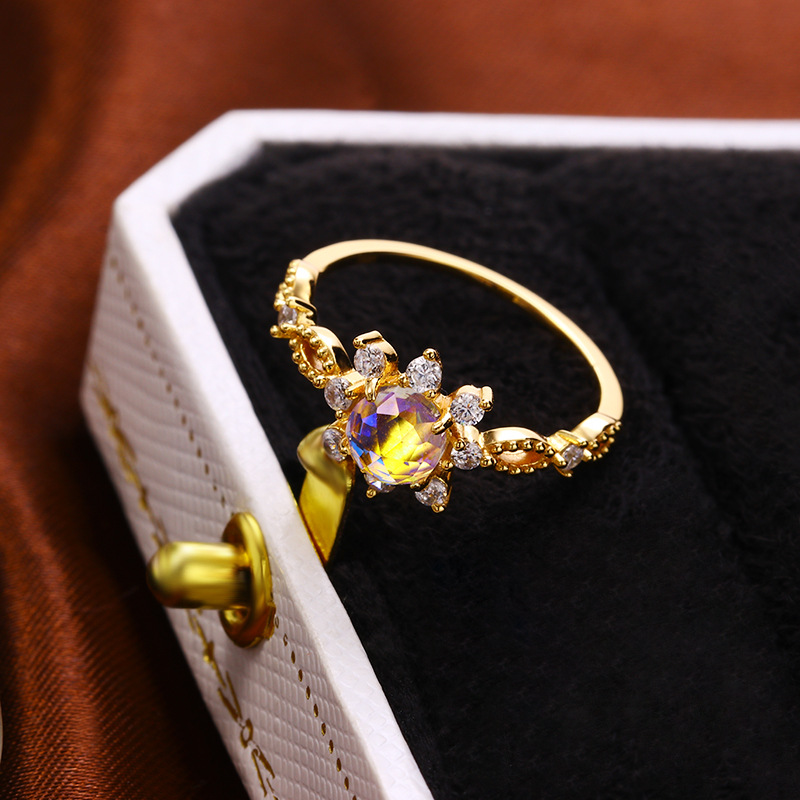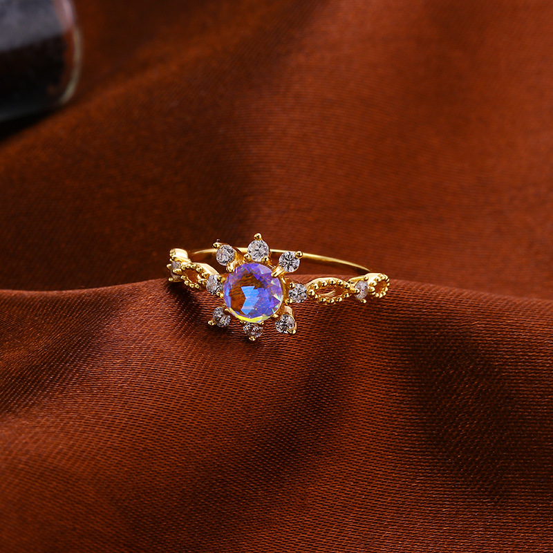 Moonlight Lovers Japanese And Korean Lace Simple Small Fresh Sterling Silver Hand Jewelry Starlight Imitation Moonstone Ring Women's925 Silver