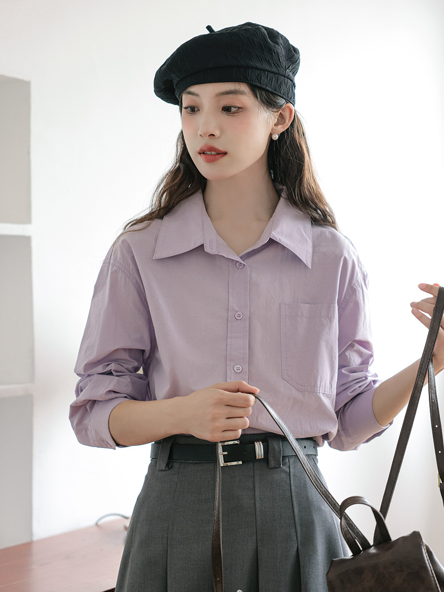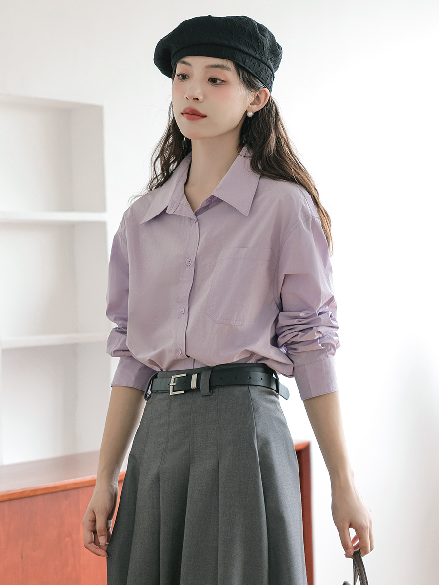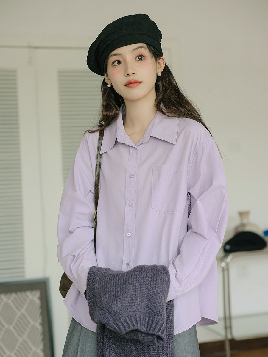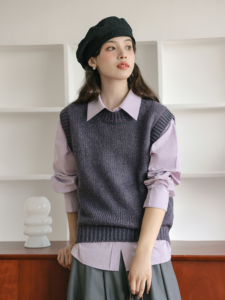Women's Shirt And Vest Suit Early Spring Design Taro Purple Long-sleeved Shirt+Knitted Vest