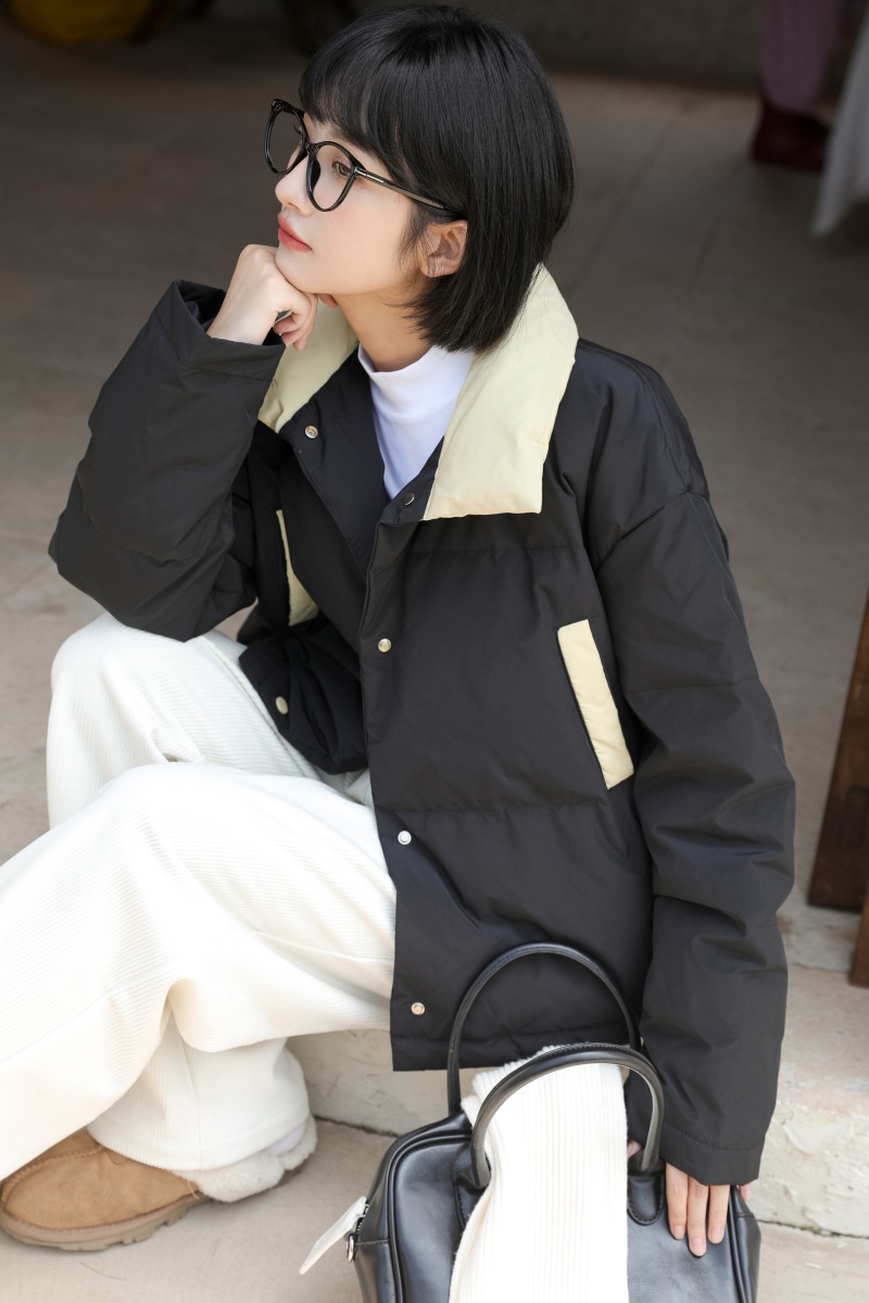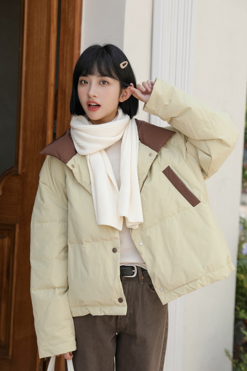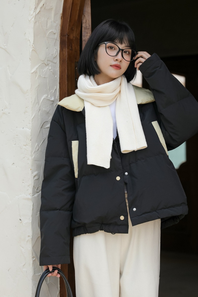 Down Jacket For Women Winter Korean Style Small White Duck Down Thickened Color Matching Stand Collar Design Cotton Jacket