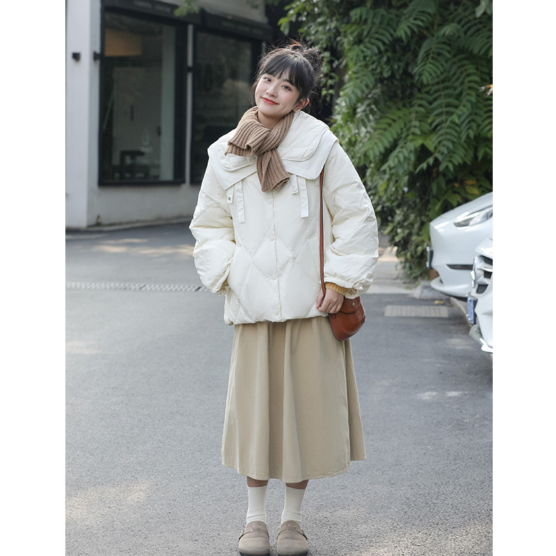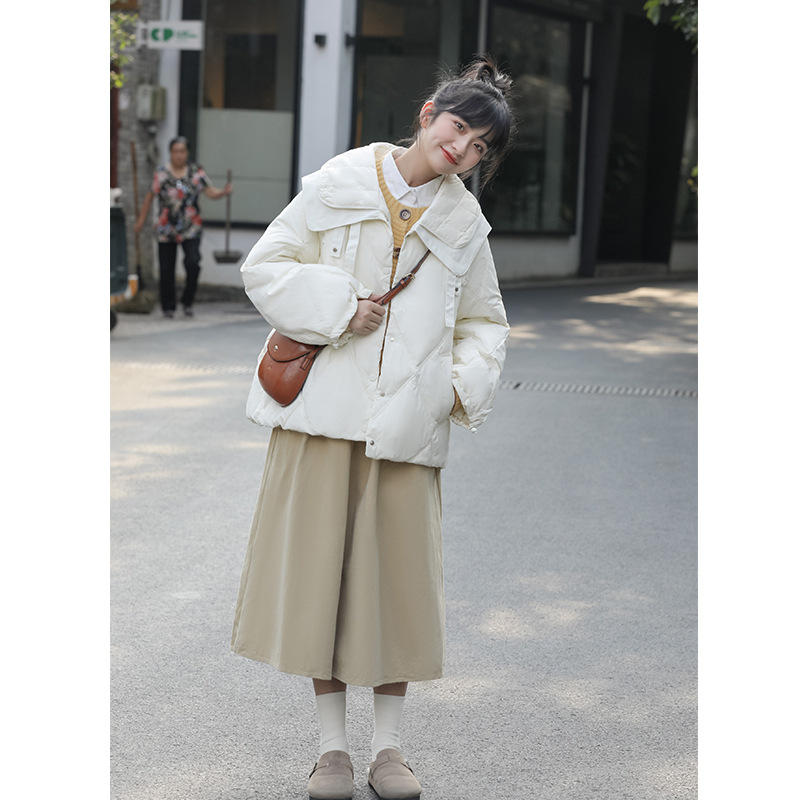 Actual Shot Of Winter Korean Version Of Sweet Chic Double-layer Navy Collar Cotton Coat For Women Loose Thickened Warm Cotton Coat