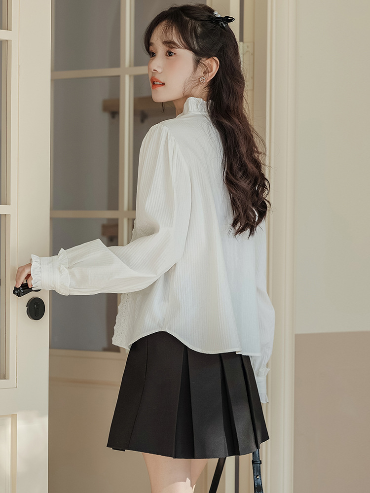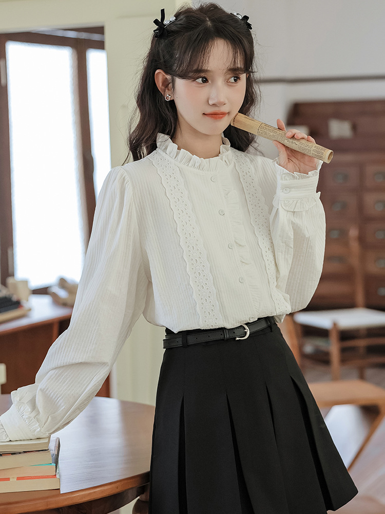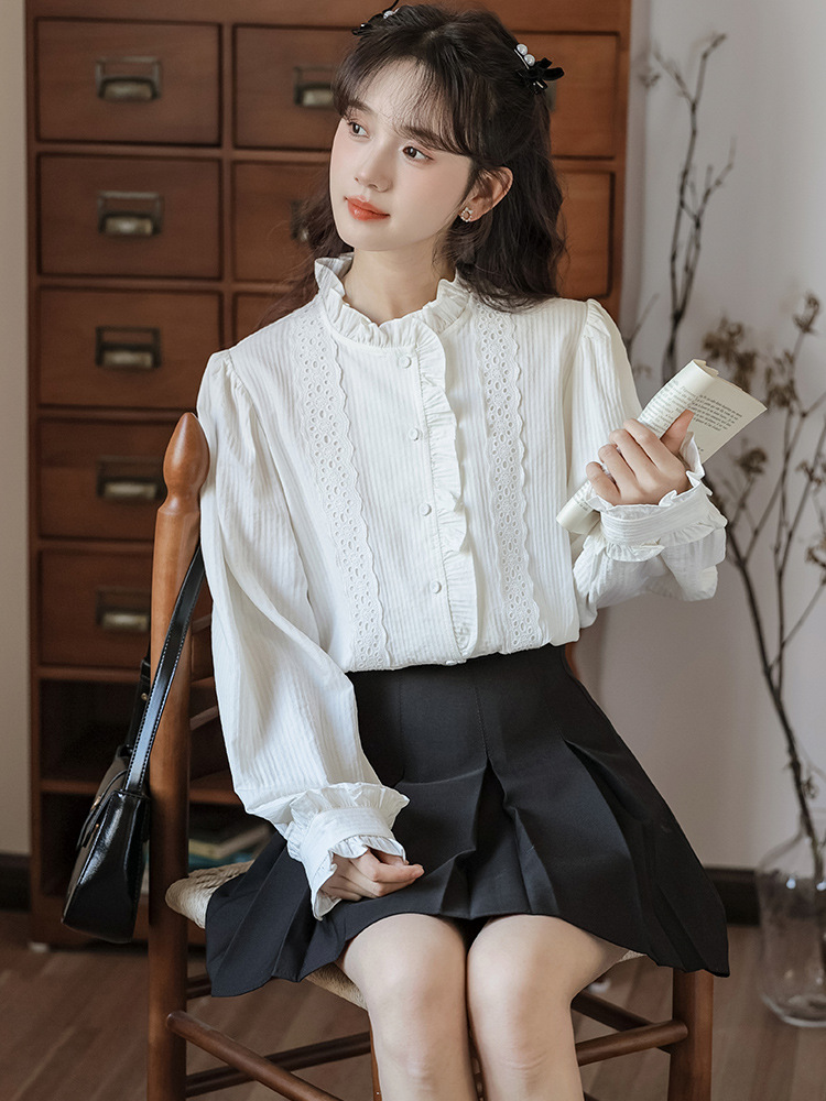 Spring Style French Gentle Style Lace Splicing Stand Collar Lantern Sleeve Long Sleeve White Shirt Shirt For Women