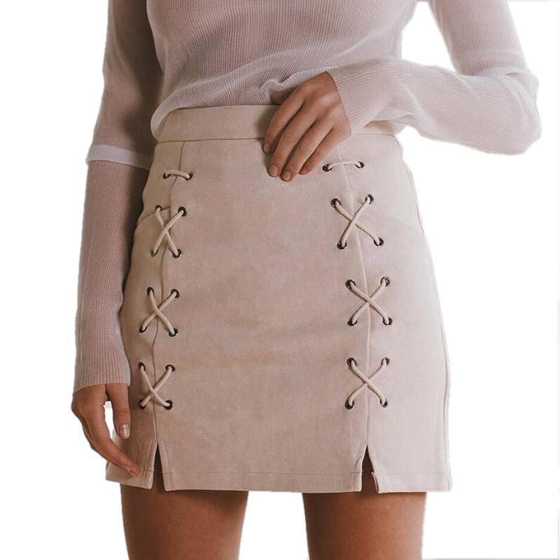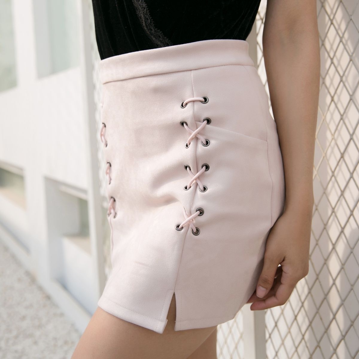 E-80860# European And American Popular Fashion Women's Autumn And Winter Suede Strap A-line White Sexy Short Skirt