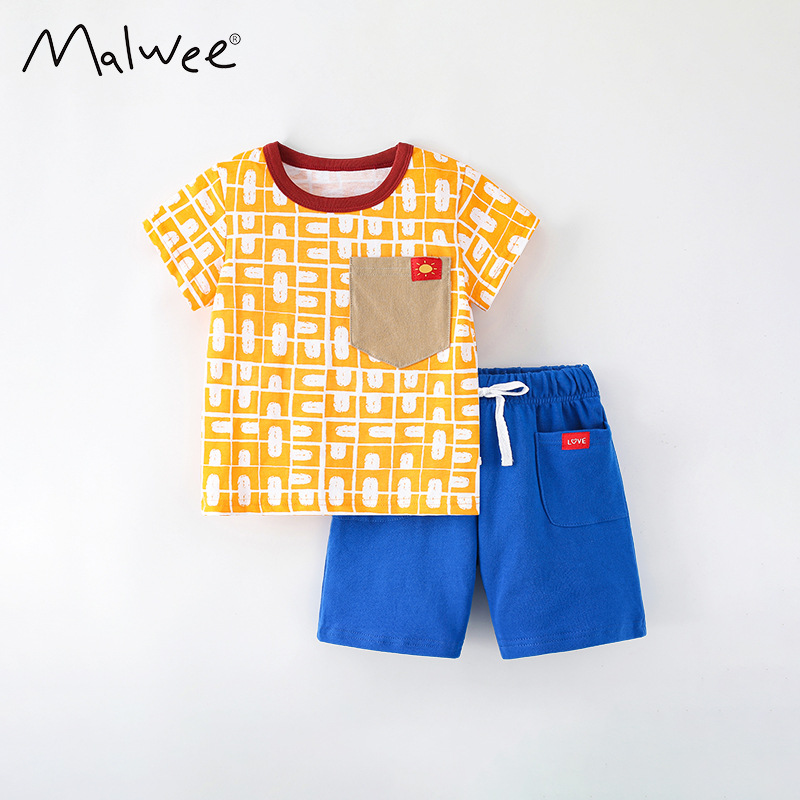 Malwee Boys'Suit Summer European And American Children's Short-sleeved T-shirt Casual Pants Children's Clothing Two-piece Set