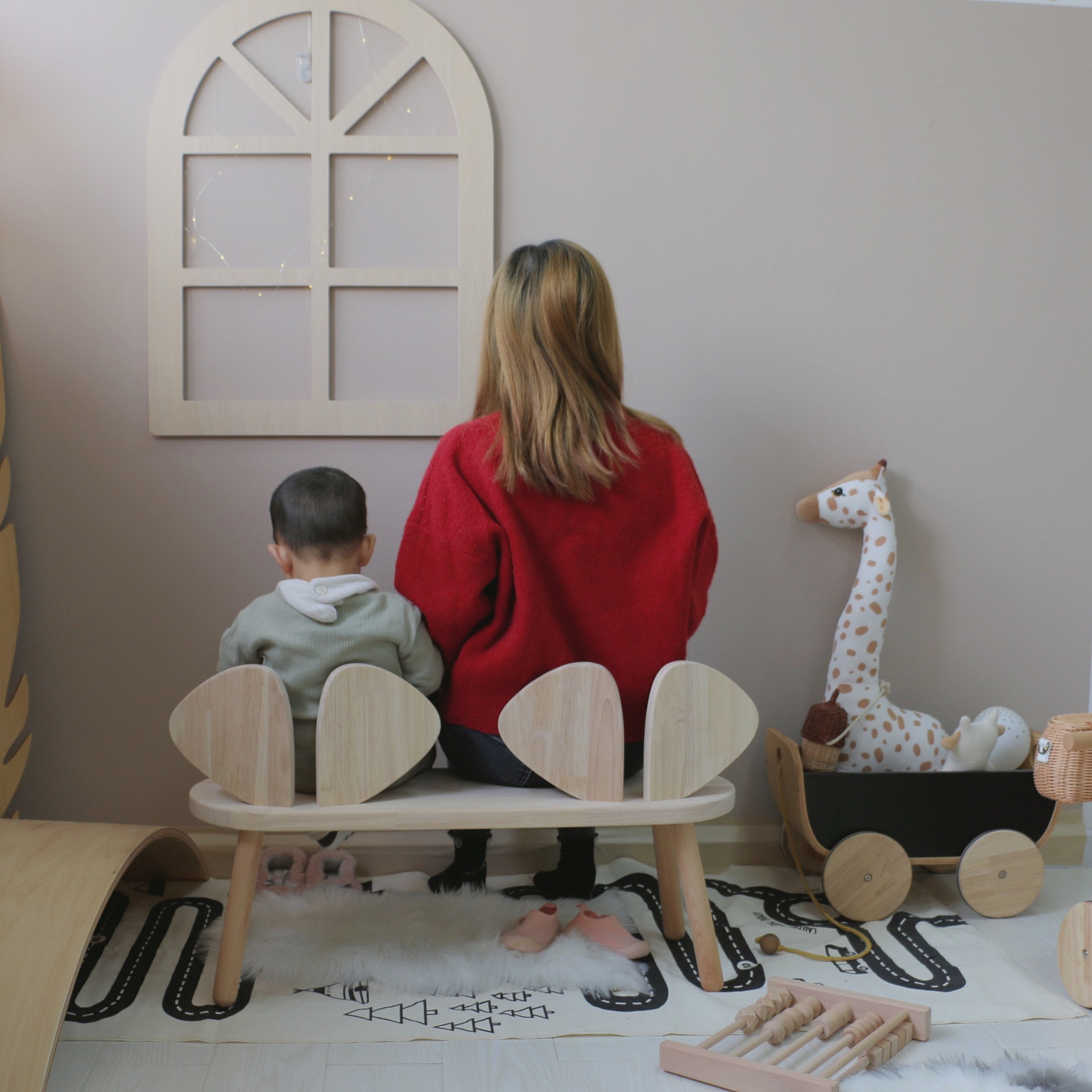 Creative Double Bench Wing-shaped Mouse Stool Solid Wood Home Children's Room Children's Clothing Store Interchangeable Shoe Learning Chair