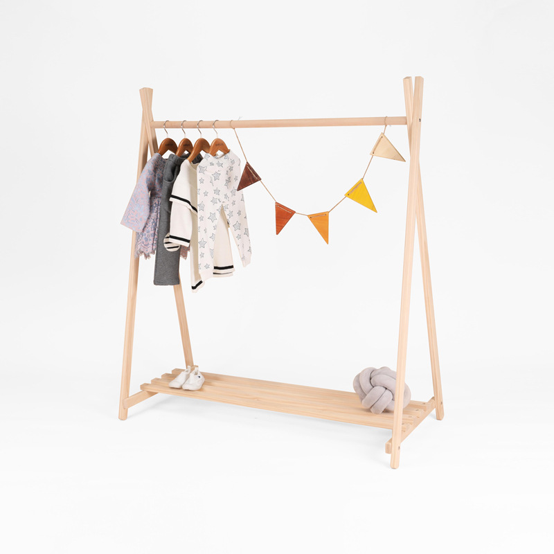 In Nordic Style Simple Solid Wood Floor-standing Children's Clothing Store Shelves Children's Room Hangers Are In Stock And Support One-piece Drop Shipping