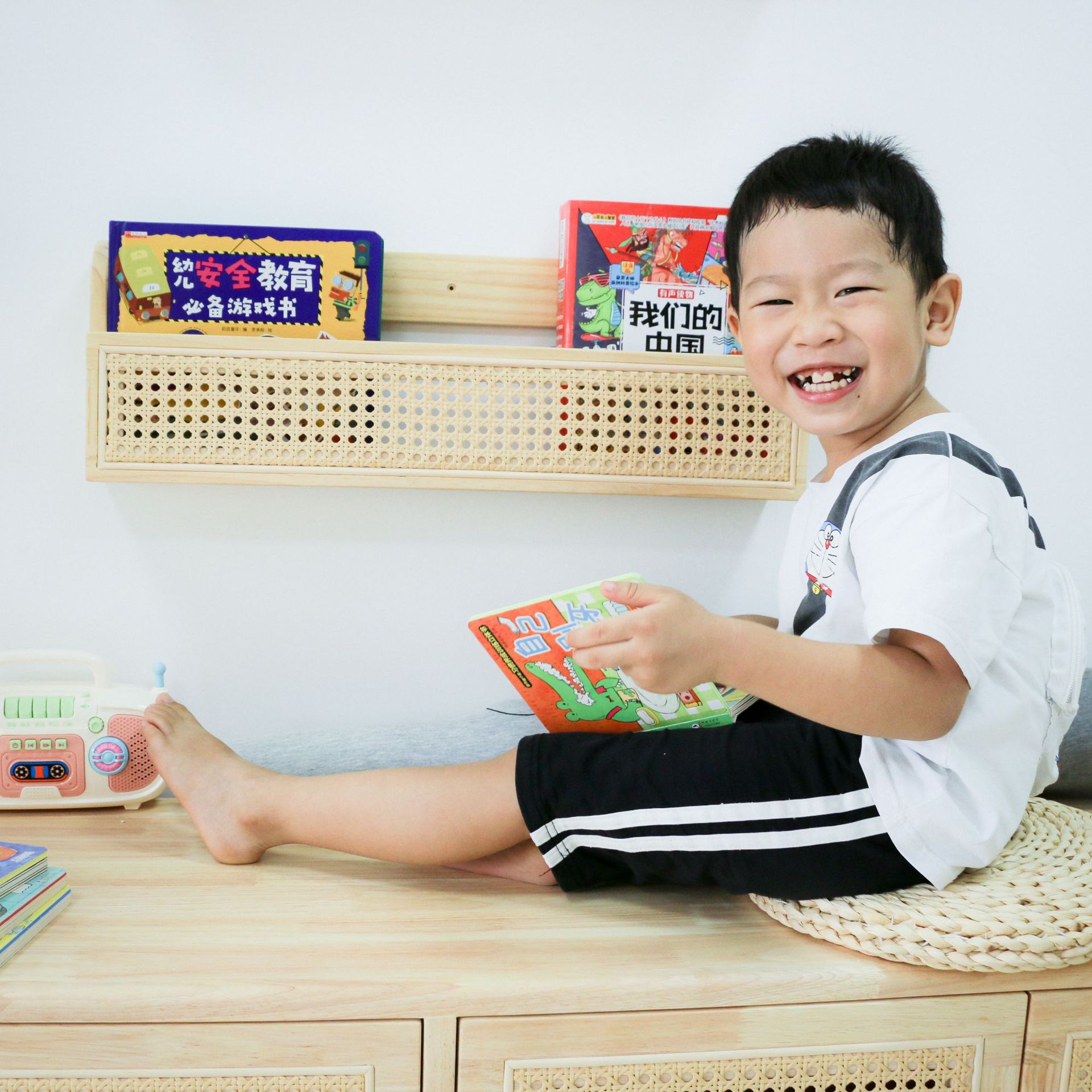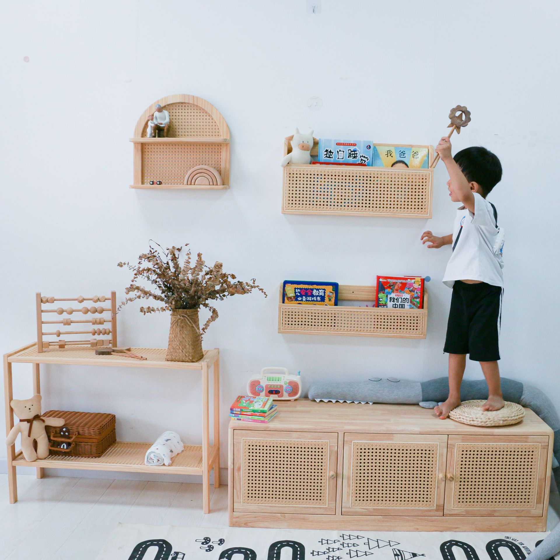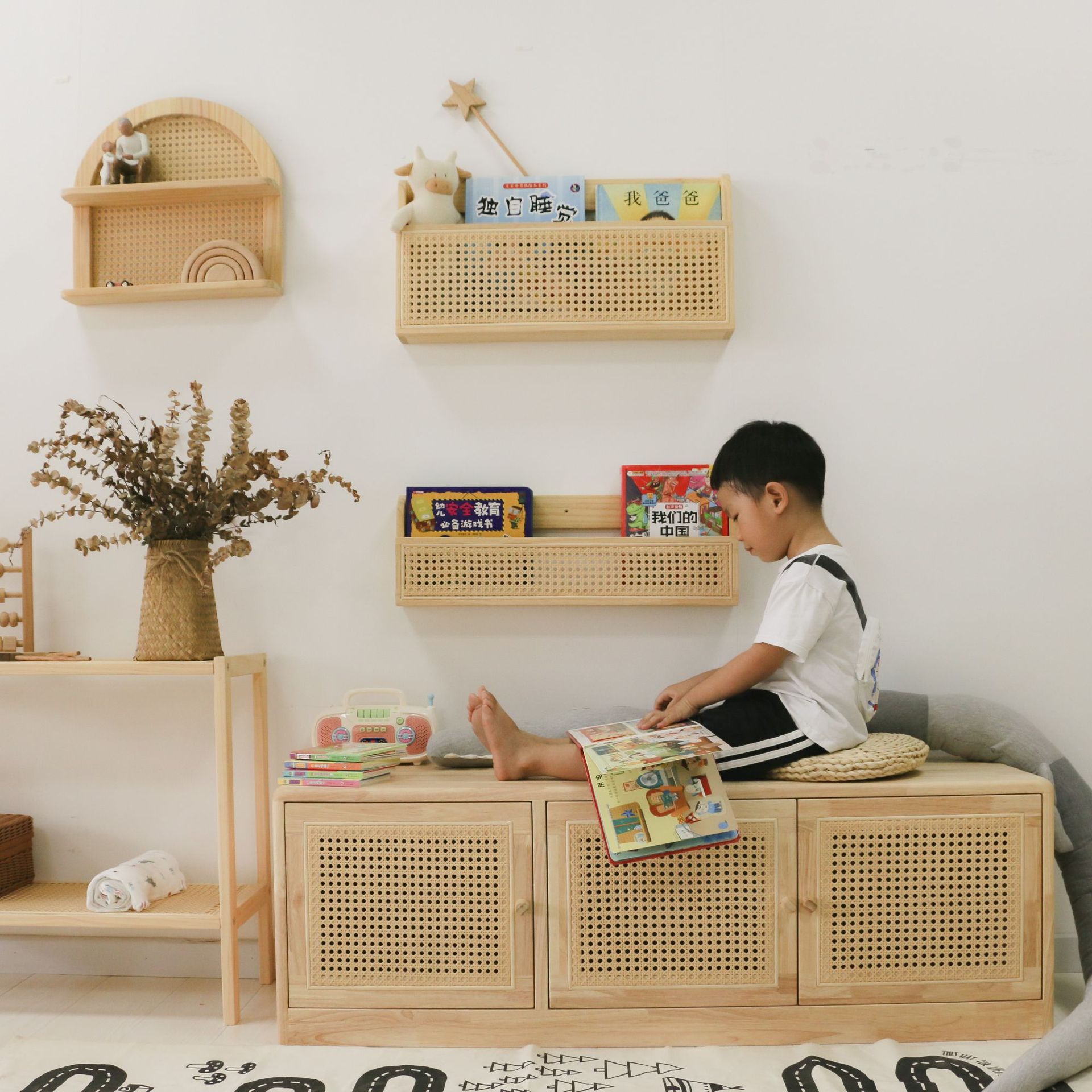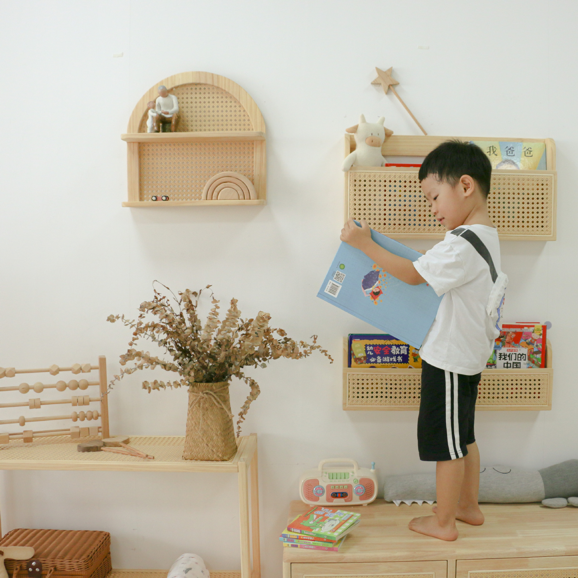 Creative Children's Rattan Bookshelf Children's Room Wall Picture Book Studio Kindergarten Display Nordic Style Shelf