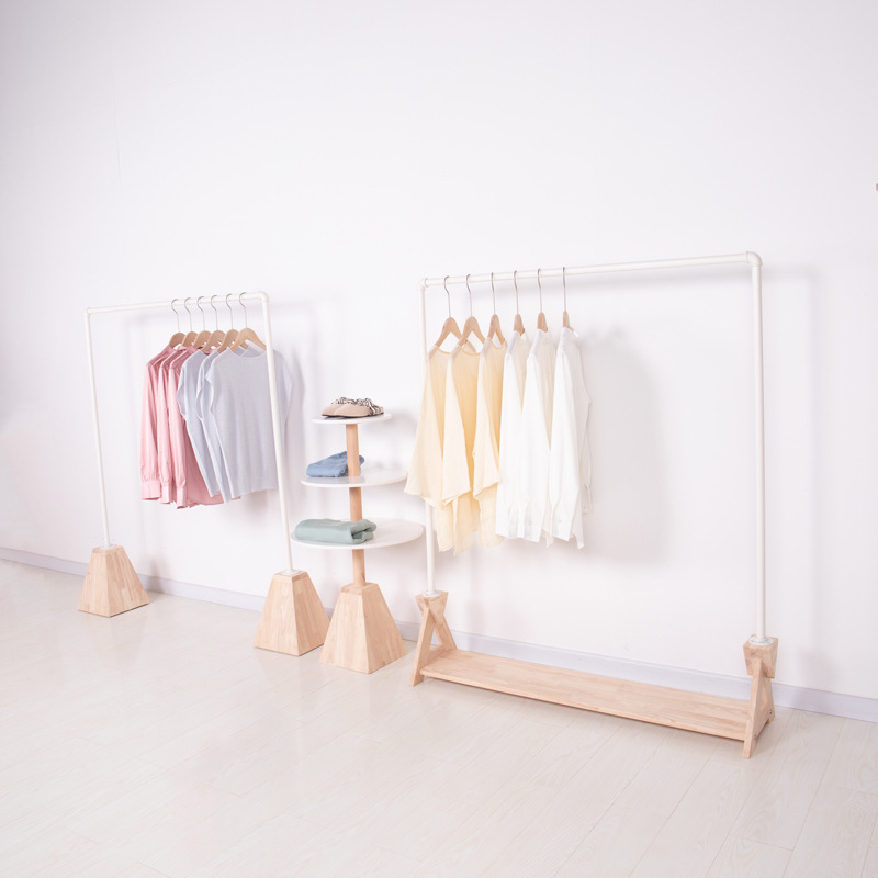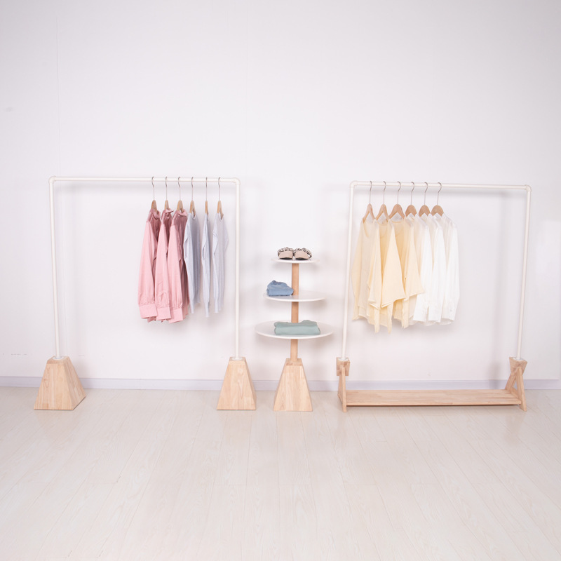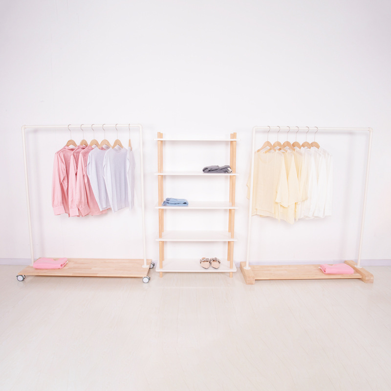Product In Stock Clothing Store Ironwood Floor-standing Roller Platform Creative Simple Nordic Style Display Series Hangers