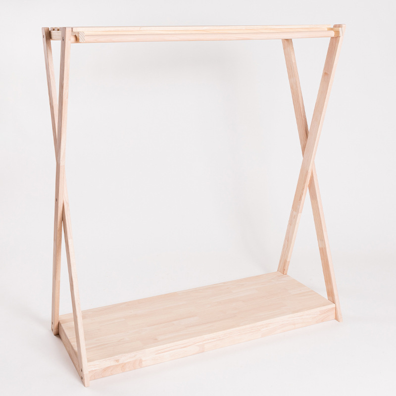 Creative Wooden Floor-standing Clothes Rack Porous Bedroom Clothing Store Display Rack Display Double-sided Hanging Island Rack Studio