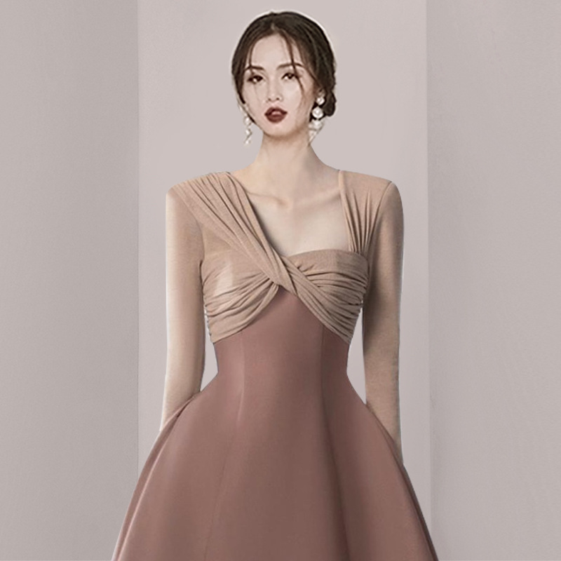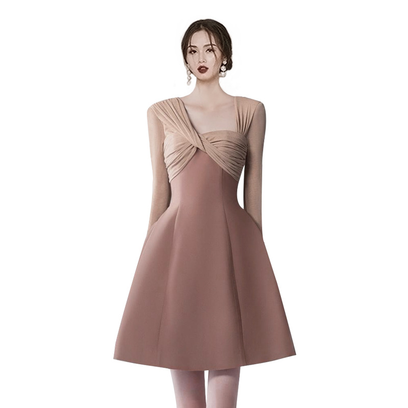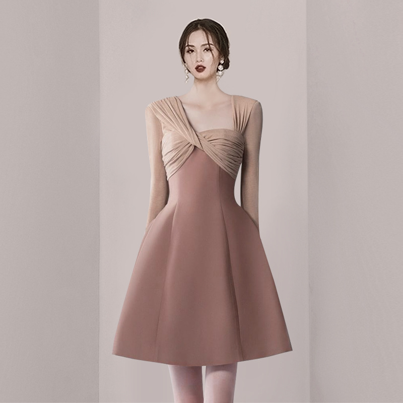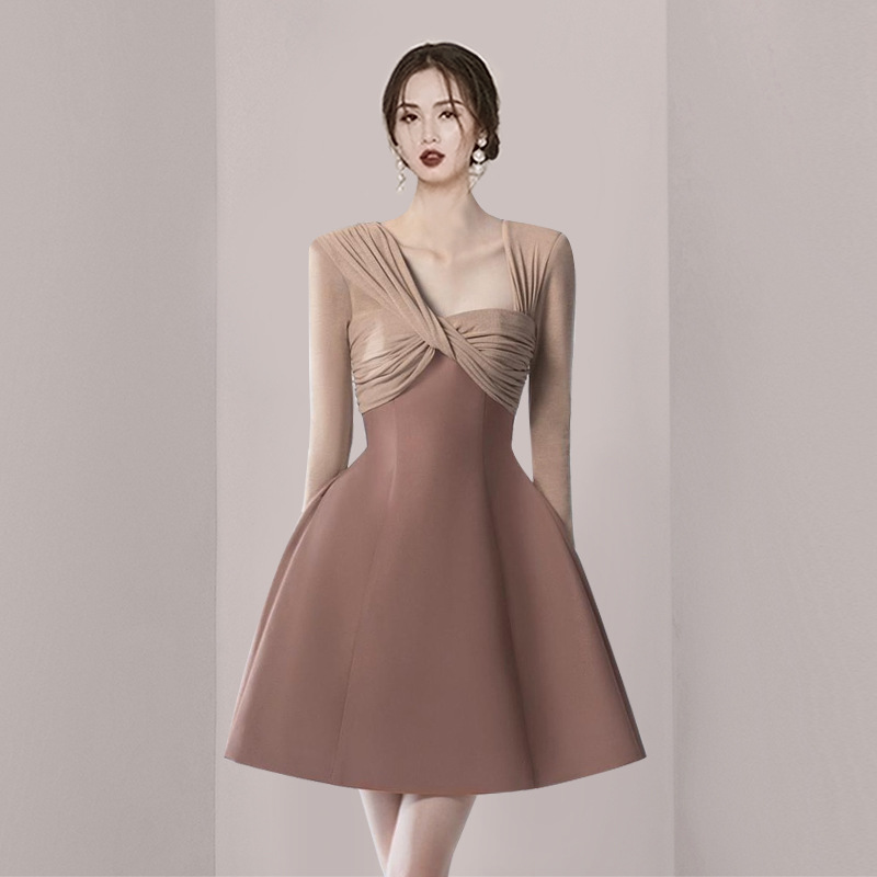 Early Spring Asymmetric Neck Twisted Temperament Elegant High Waist Slim Dress Birthday Party Small Dress