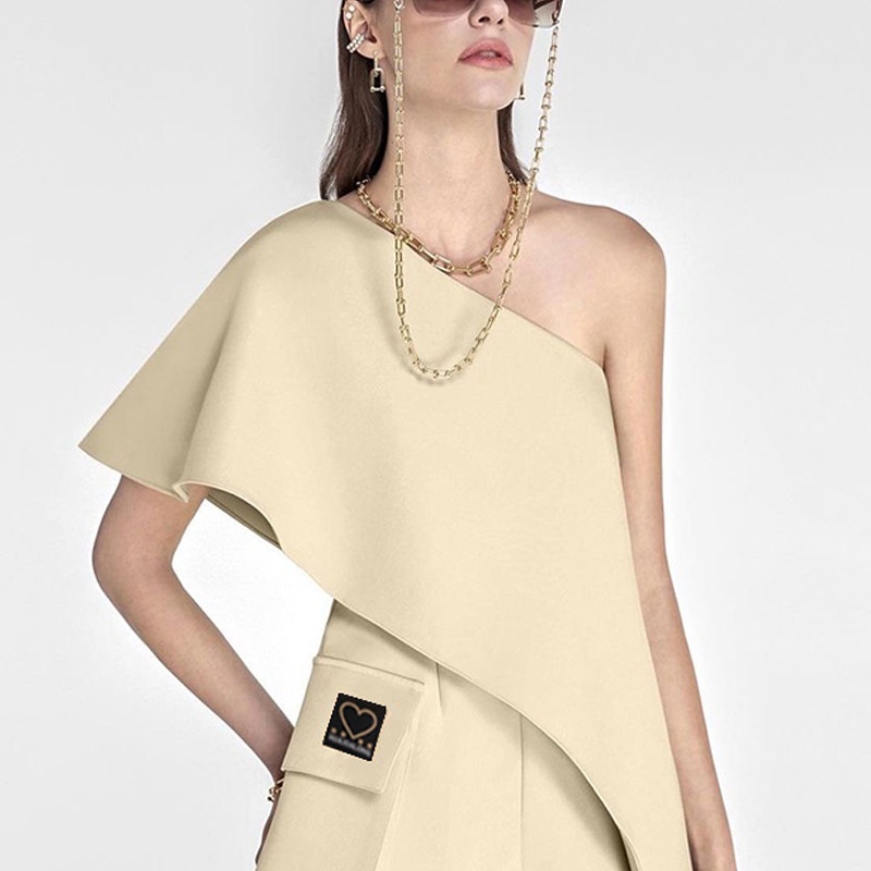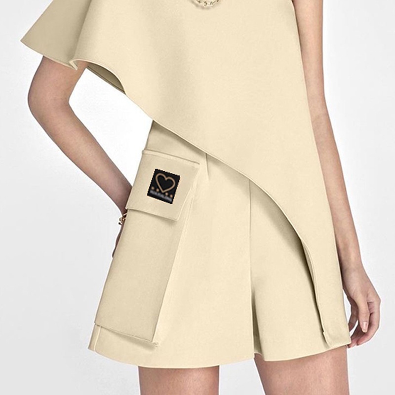 Fashion Niche Design With Ruffled Edge Elegant Diagonal Shoulder Romper Shorts