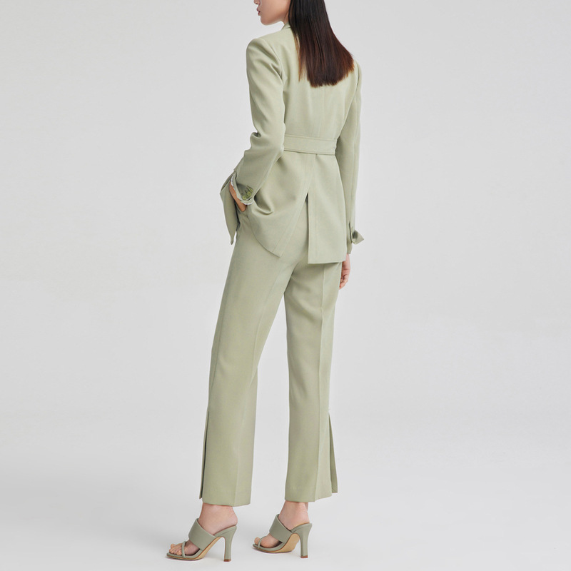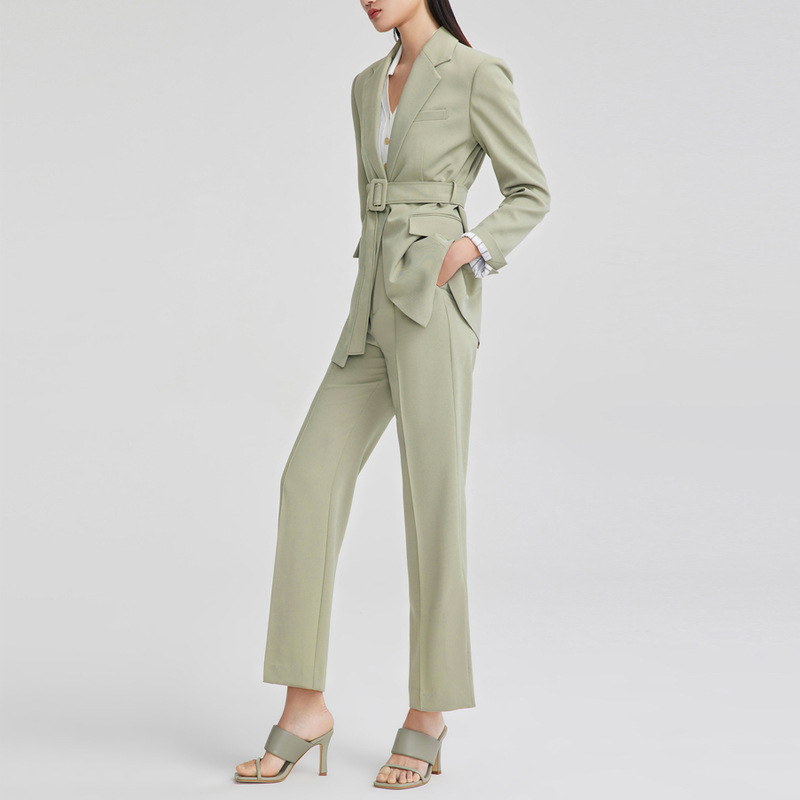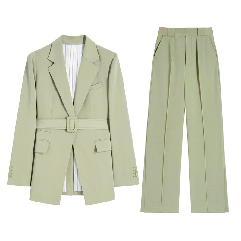 Autumn Green Commuter Professional Suit Business Tie Waist Small Suit Women's Two-piece Suit