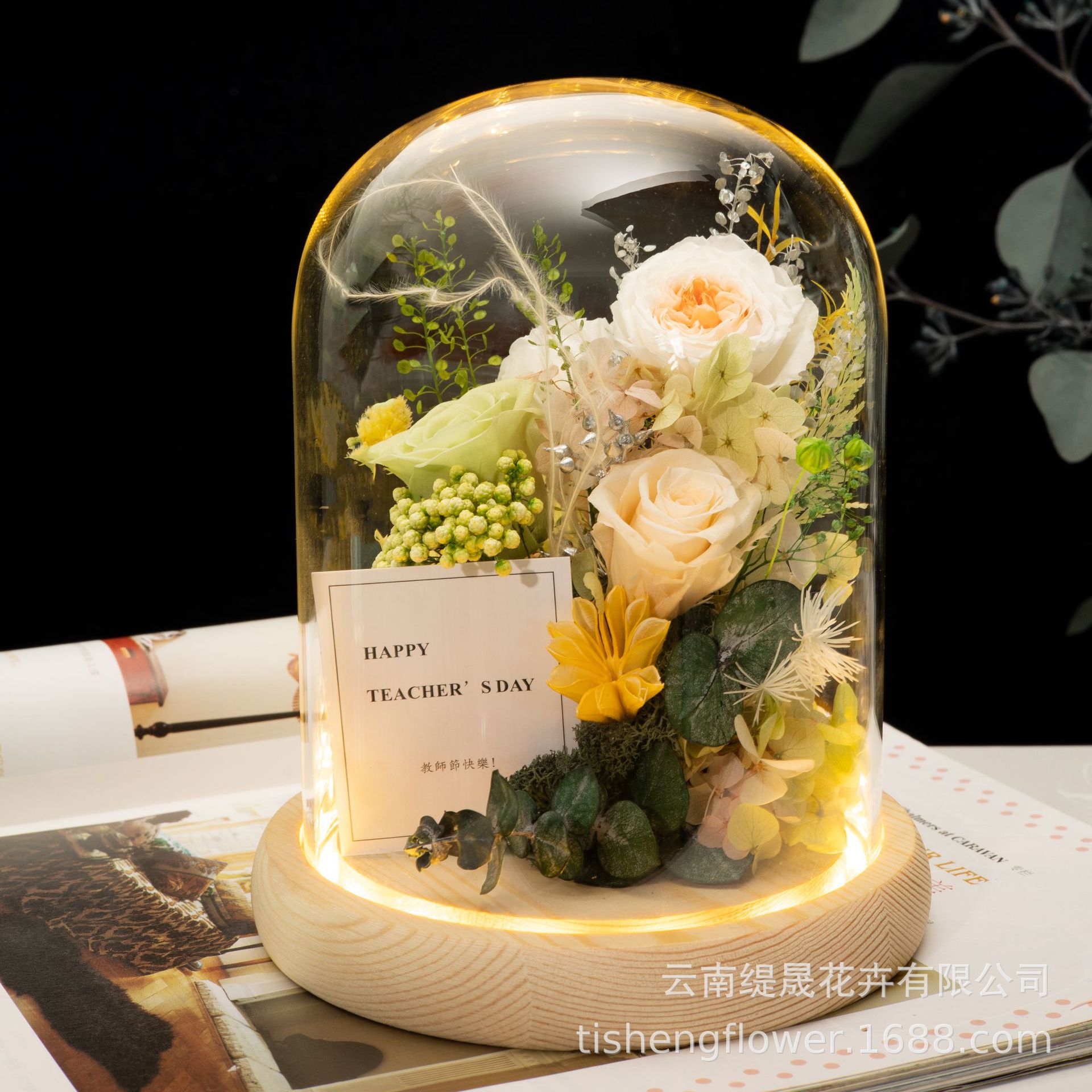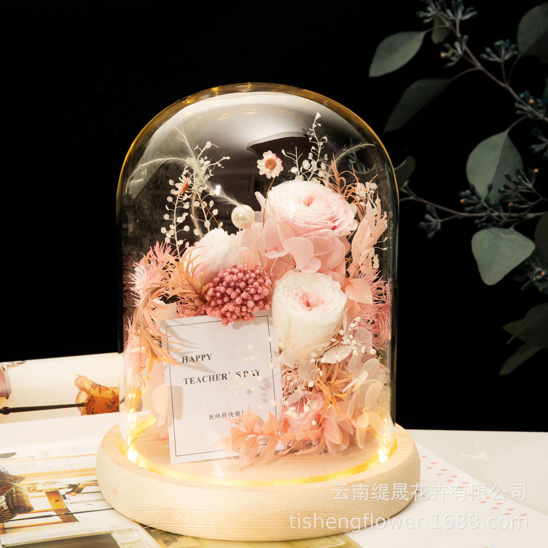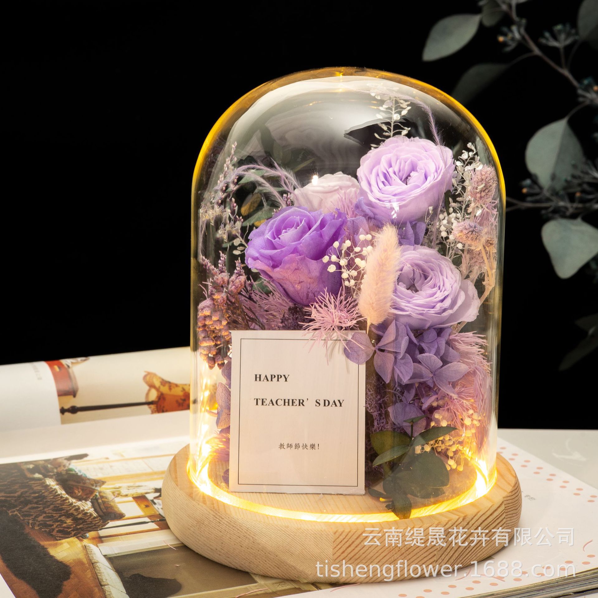 Preserved Flower Glass Cover Ornaments Chinese Valentine's Day Gift Teacher's Day Rose Dried Flower Bouquet Gift Box For Girlfriend