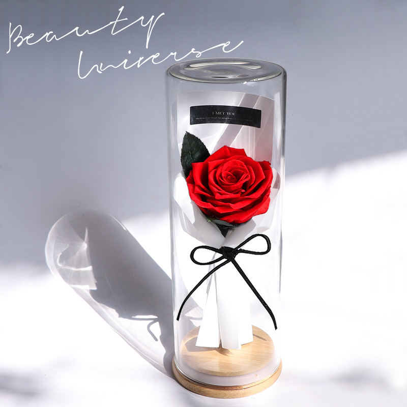 Preserved Flower Roses Dried Flower Bouquet Real Flower Glass Cover Ornaments Valentine's Day Women's Day Gift For Girlfriend Teacher's Day
