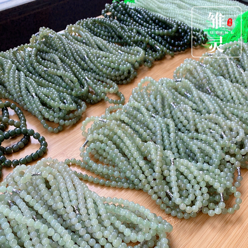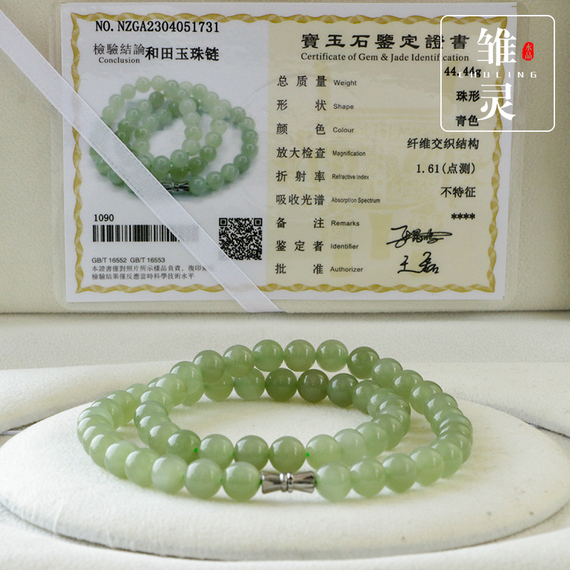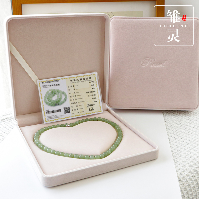 Chu Ling Elegant8mm Mother's Chain Qinghai Material Qingshui Natural Hetian Jade Necklace Women's Mother's Day Necklace