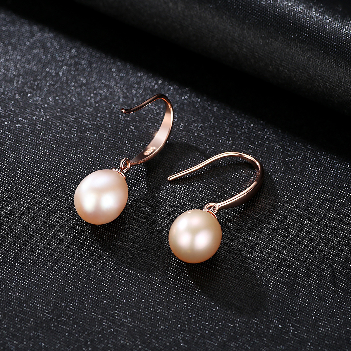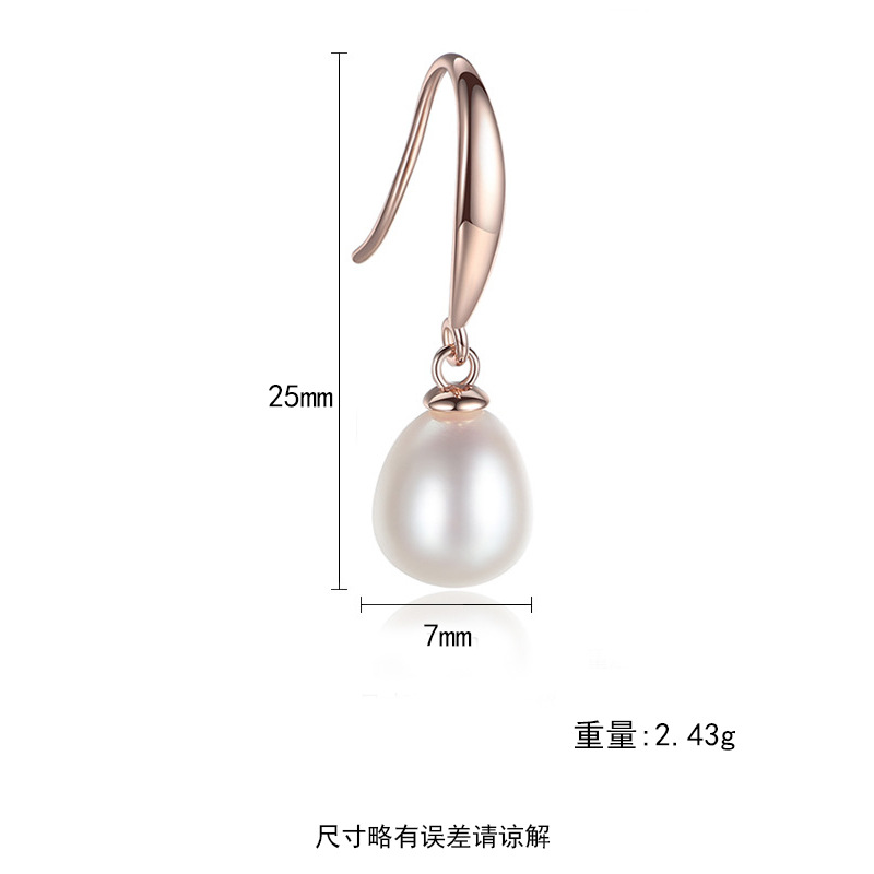 PAG&MAGRose Gold Earrings Light Luxury S925 Silver Pearl Earrings Ear Hook Style Korean Style Elegant Silver Jewelry