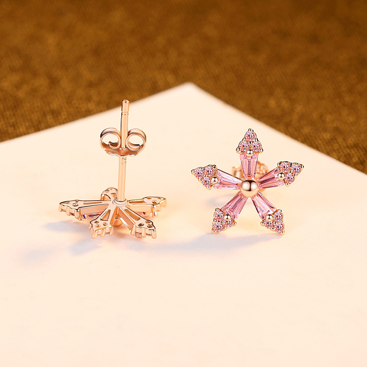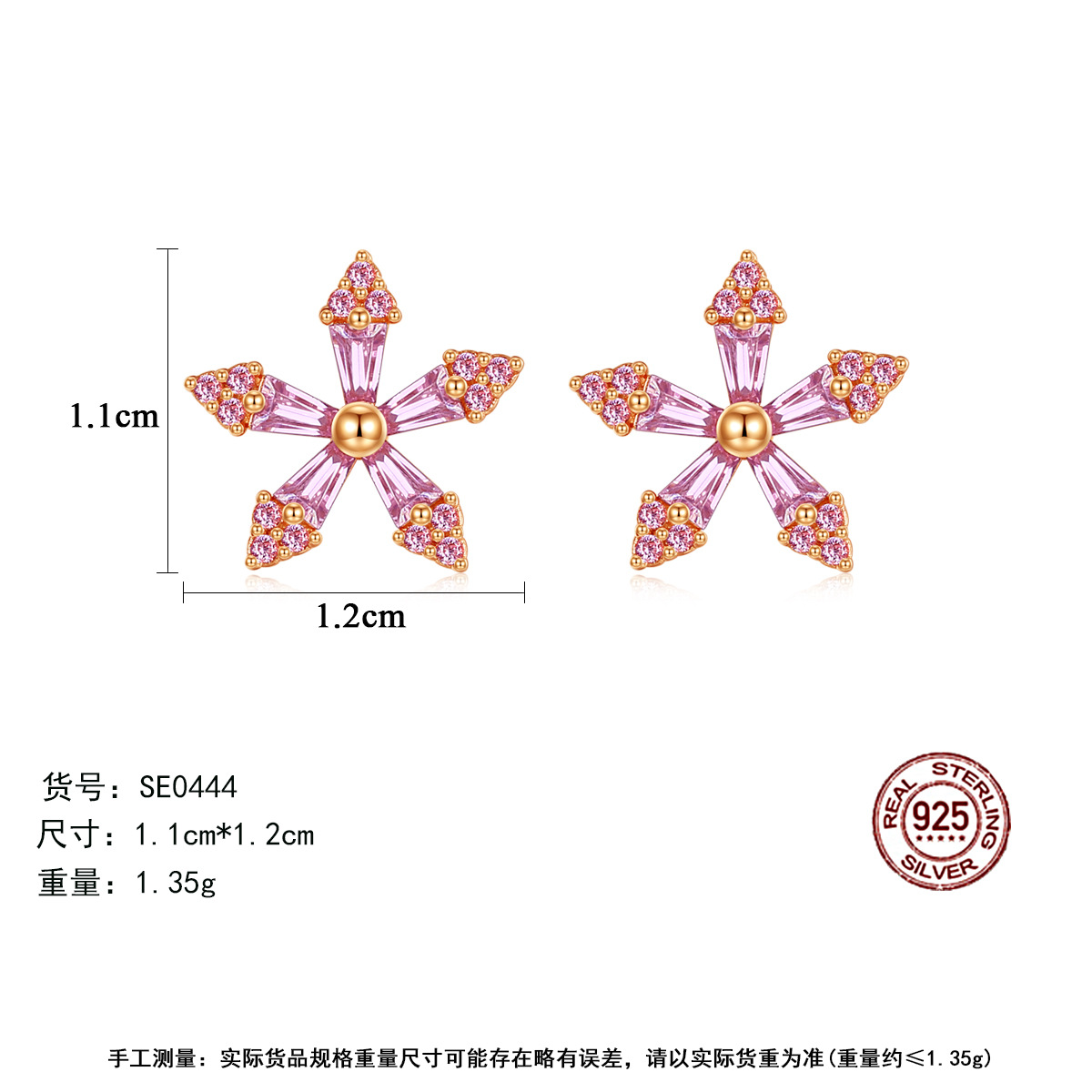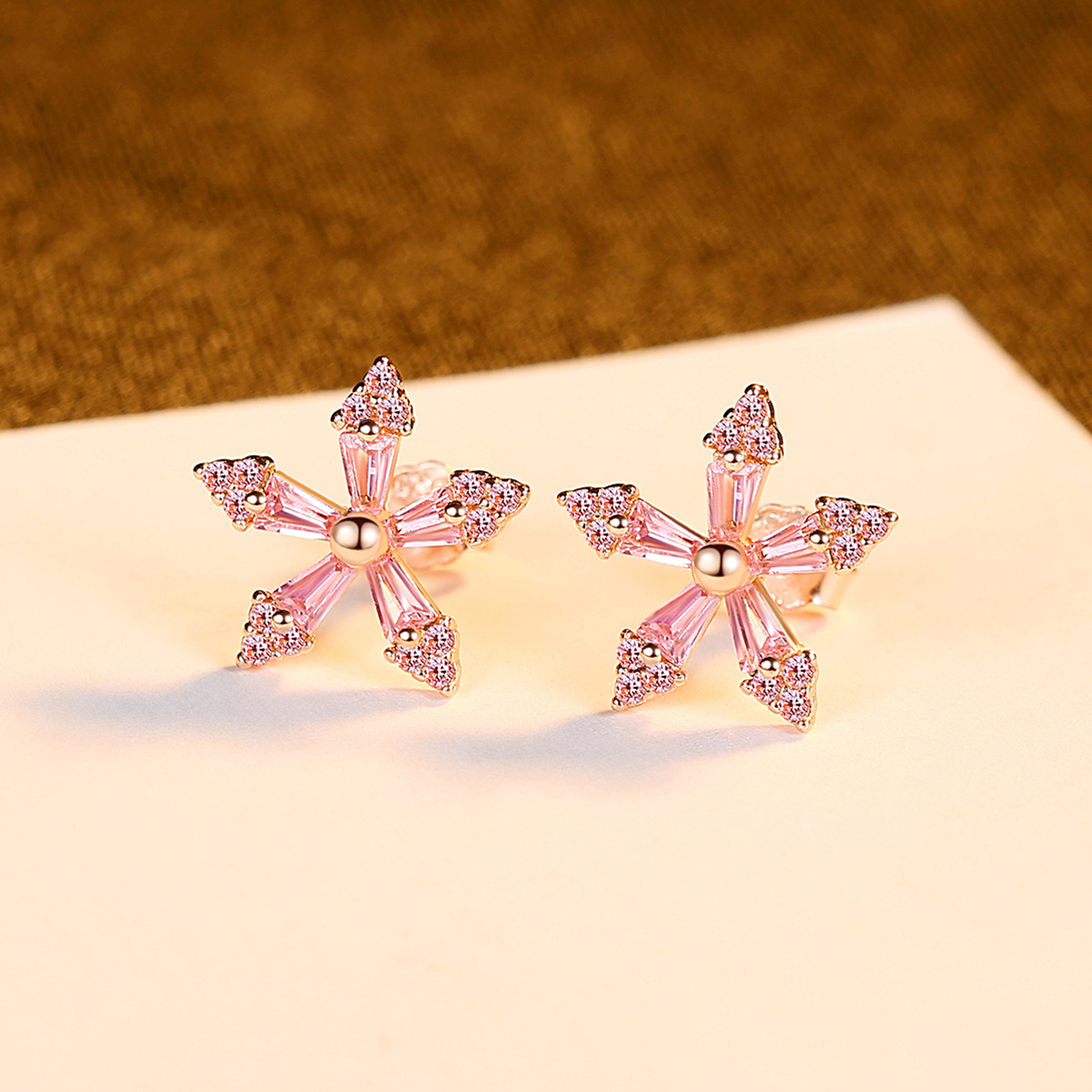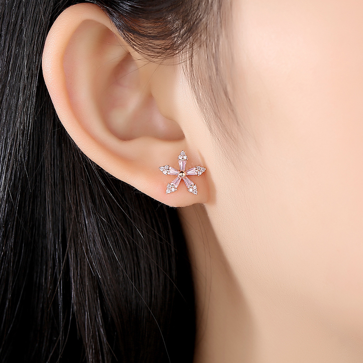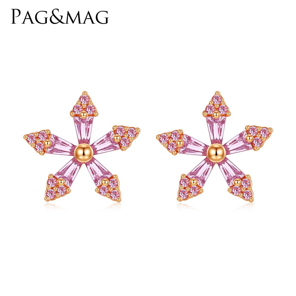 PAG&MAGFashion Earrings S925 Tremella Earrings Pink Zirconium Flowers Korean Style Sweet,Cute And Versatile Accessories