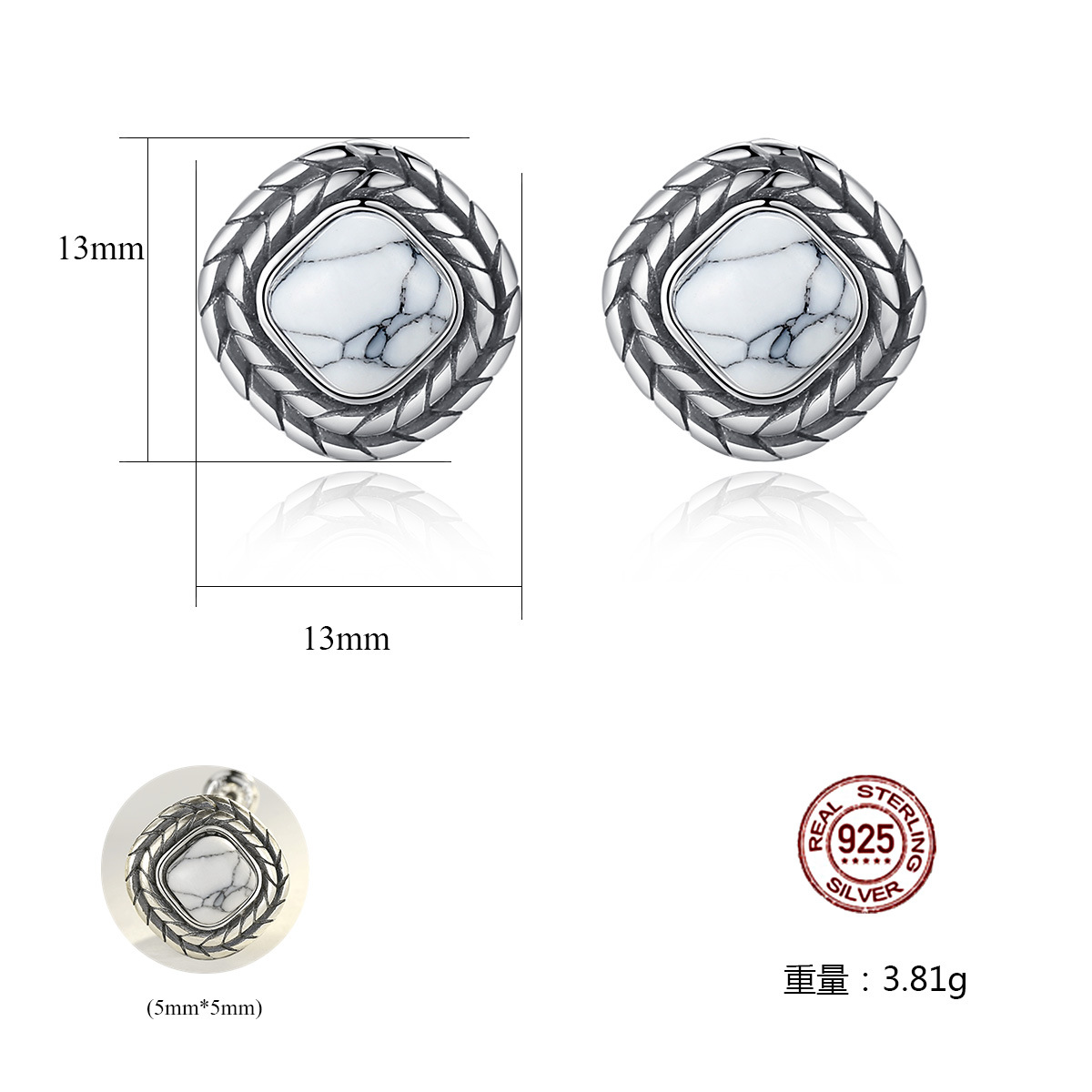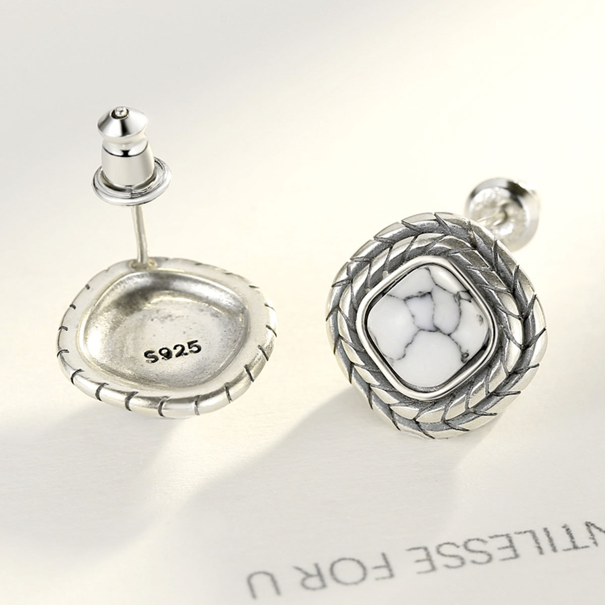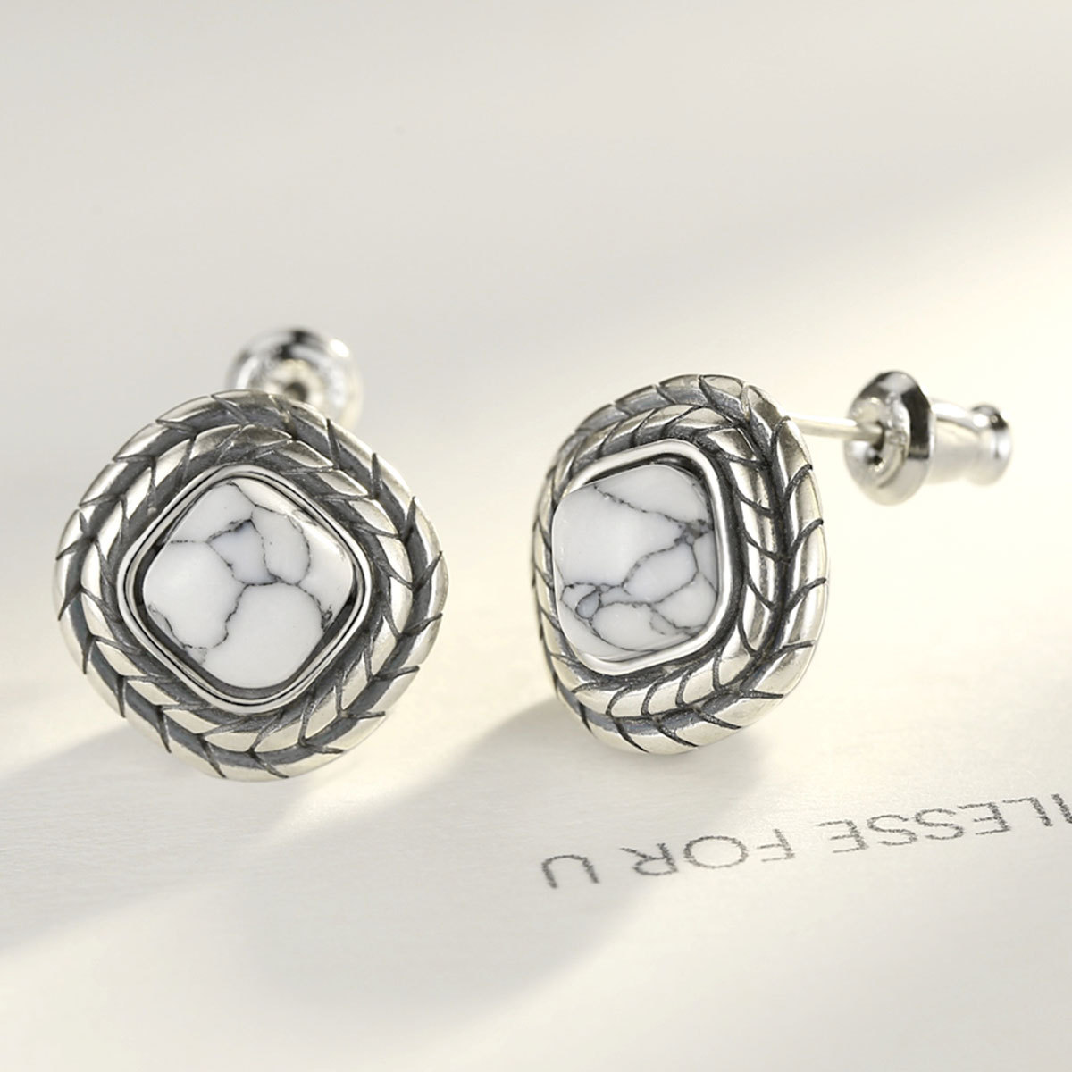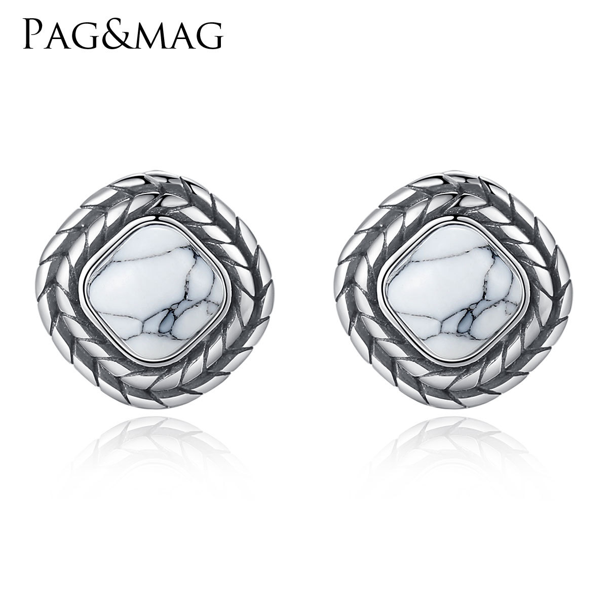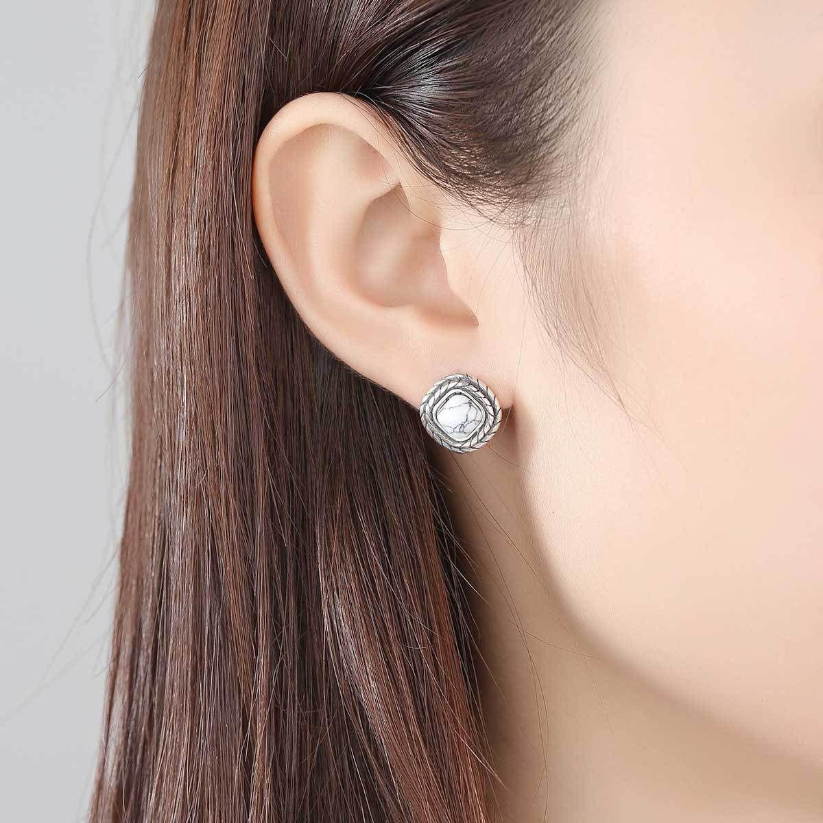 PAG&MAGSquare Earrings Earrings S925 Silver Earrings White Turquoise Hong Kong Style Temperament All-match Silver Jewelry