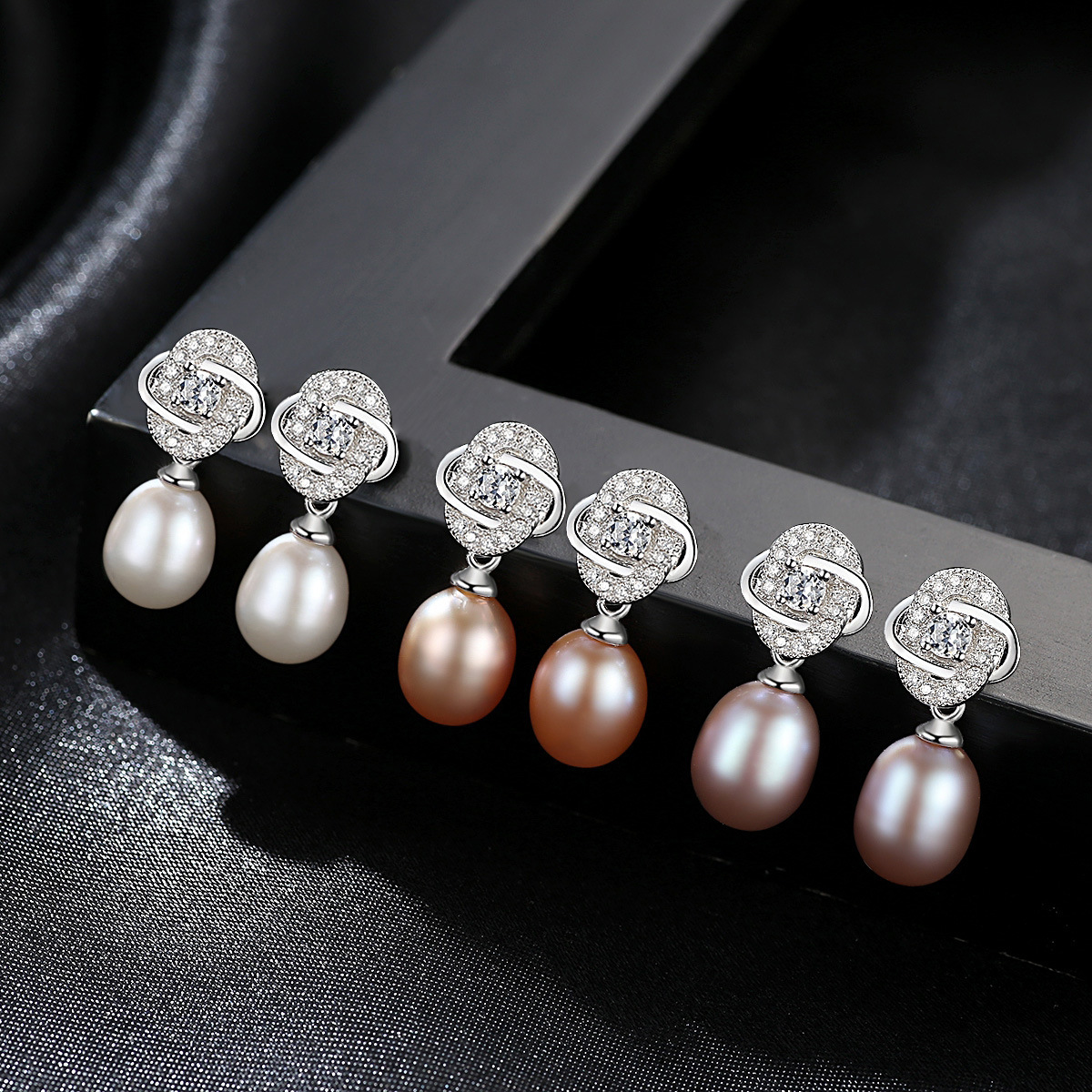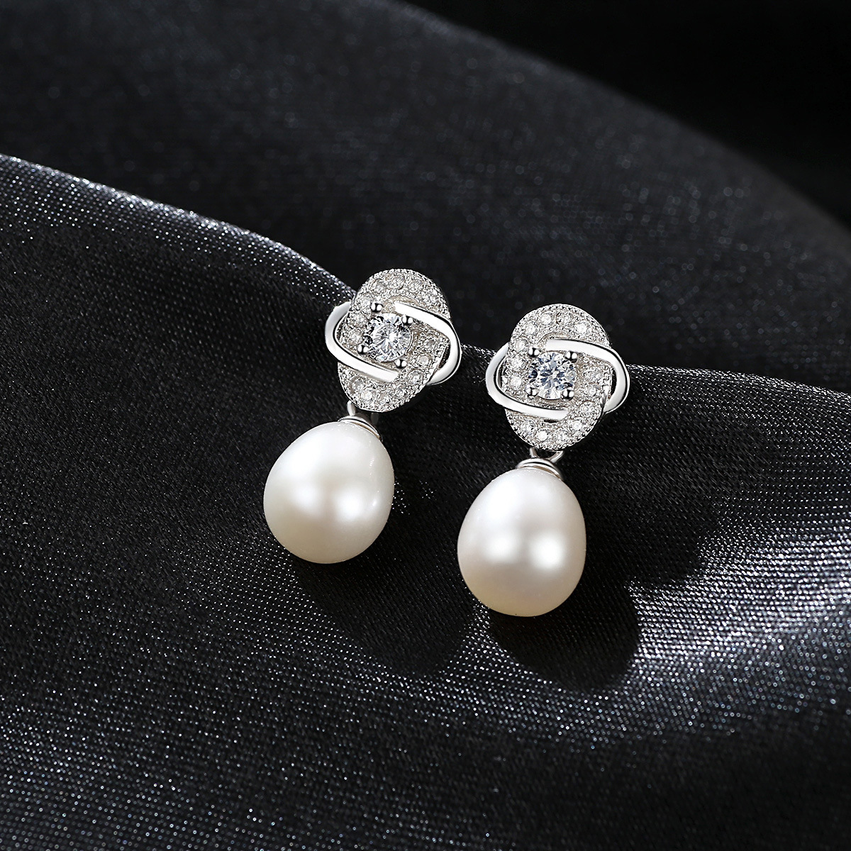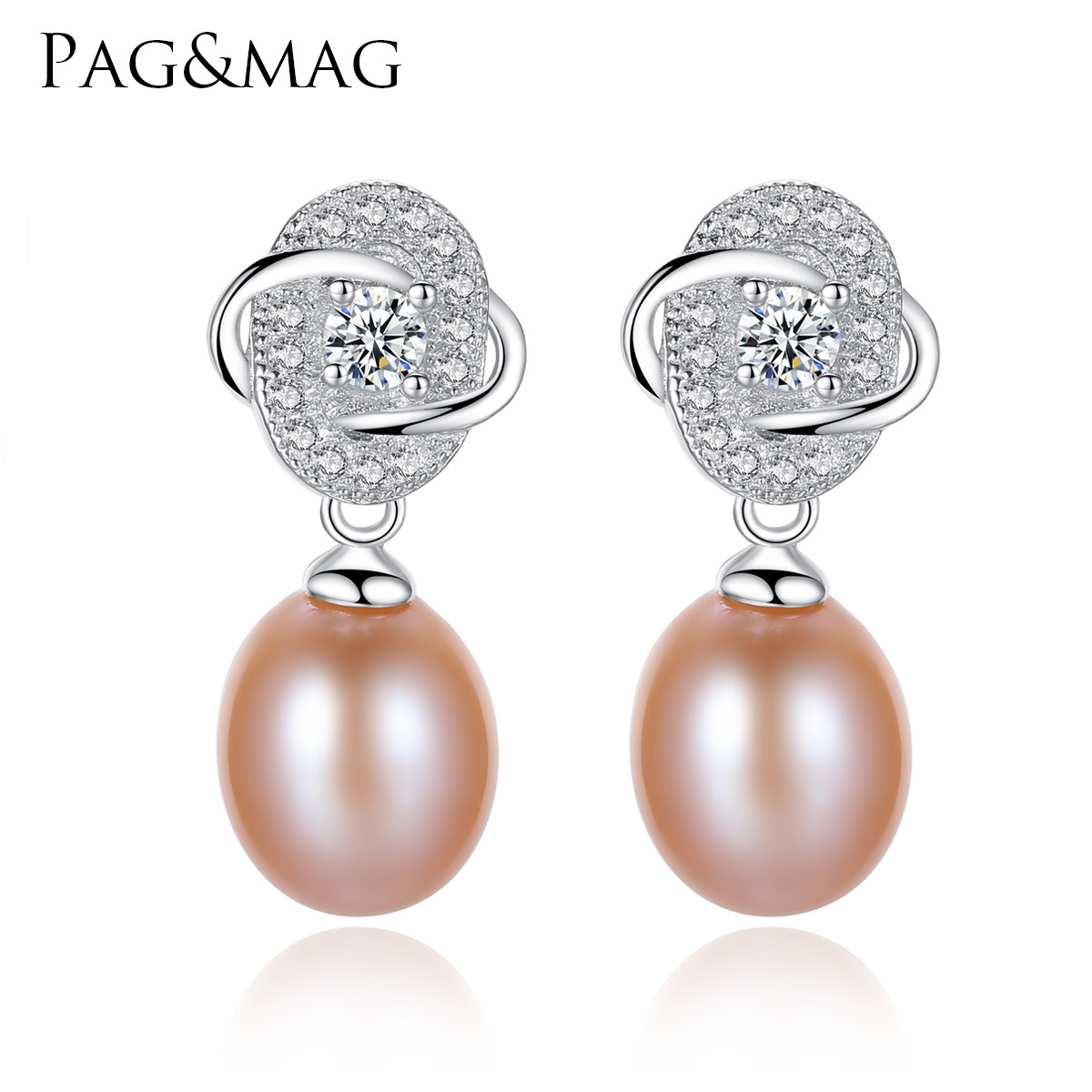 PAG&MAGEuropean And American S925 Sterling Silver Flower Earrings,Silver Pearls,Rice Beads,Micro-inlaid Zircon Women's Silver Earrings