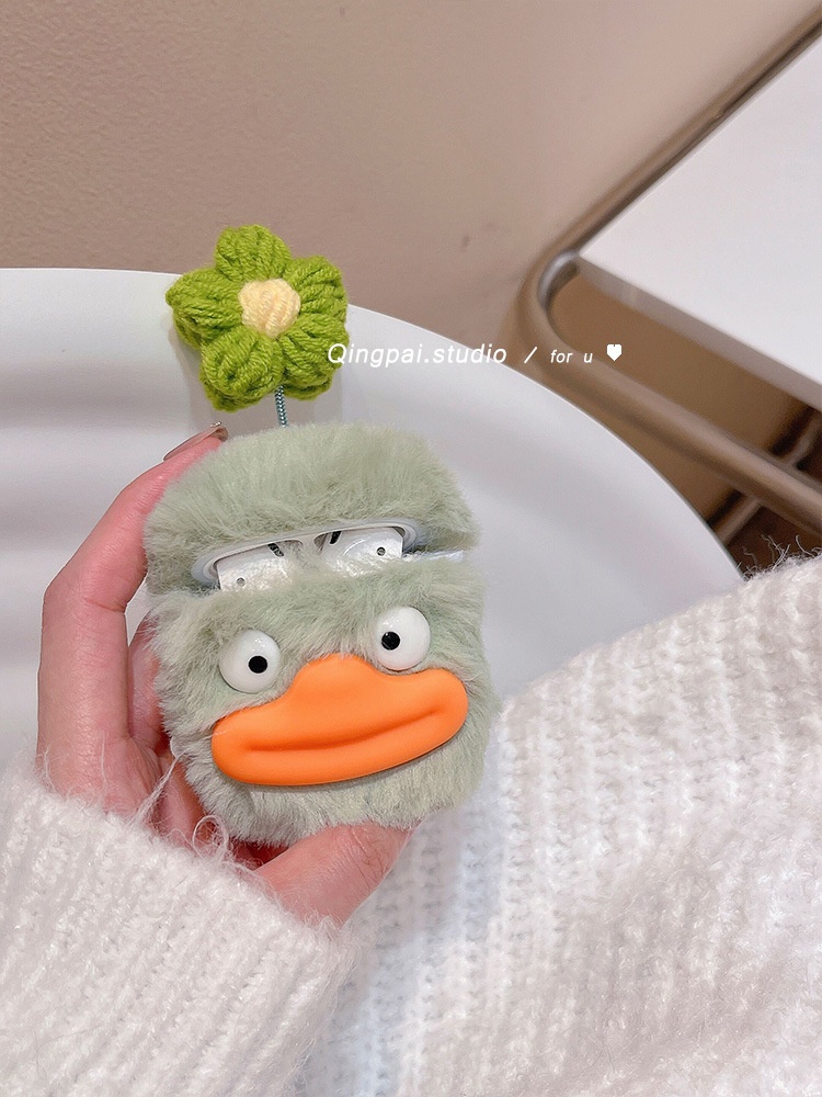 Suitable For Airpods3 Protective Case Green Plush Airpodspro2 Apple Earphone Case Autumn And Winter Soft Protective Case