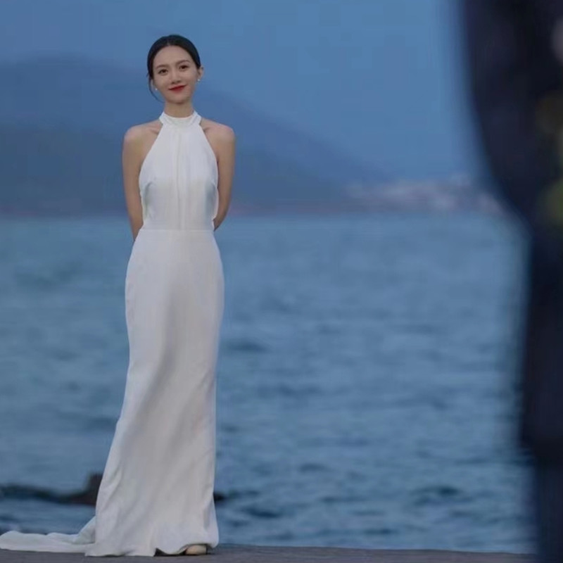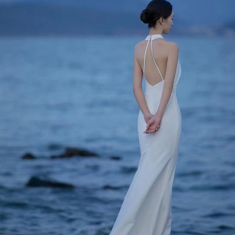 Sexy Light Wedding Dress,Simple Travel Photography,White Slimming Super Fairy Mermaid Tail,Small Tail,Seaside Photography,Niche Dress,Spring
