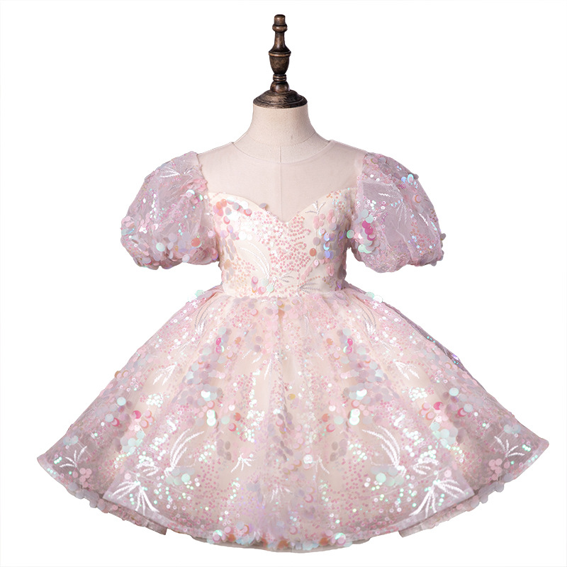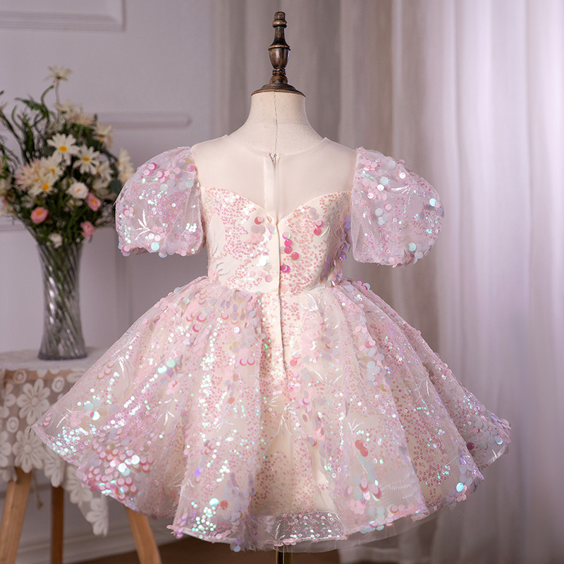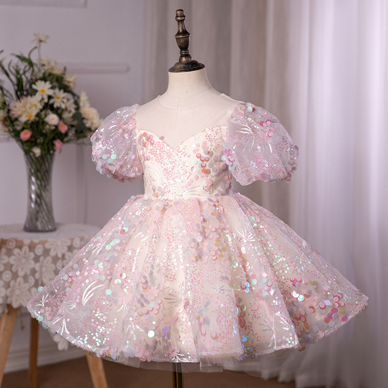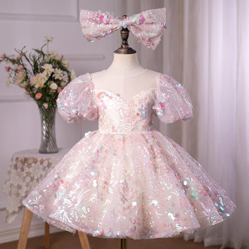 Children's Wedding Dress Princess Dress Pink Color Patch Flower Girl Wedding Little Girl Dress Baby Girl's One-year-old Dress