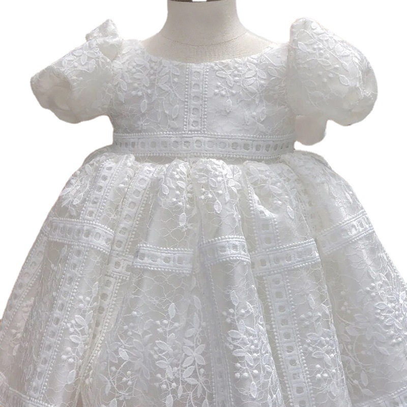 One-year-old Baby Girl Dress Tutu Skirt White High-end Flower Girl Wedding Princess Dress Children's Birthday Dress