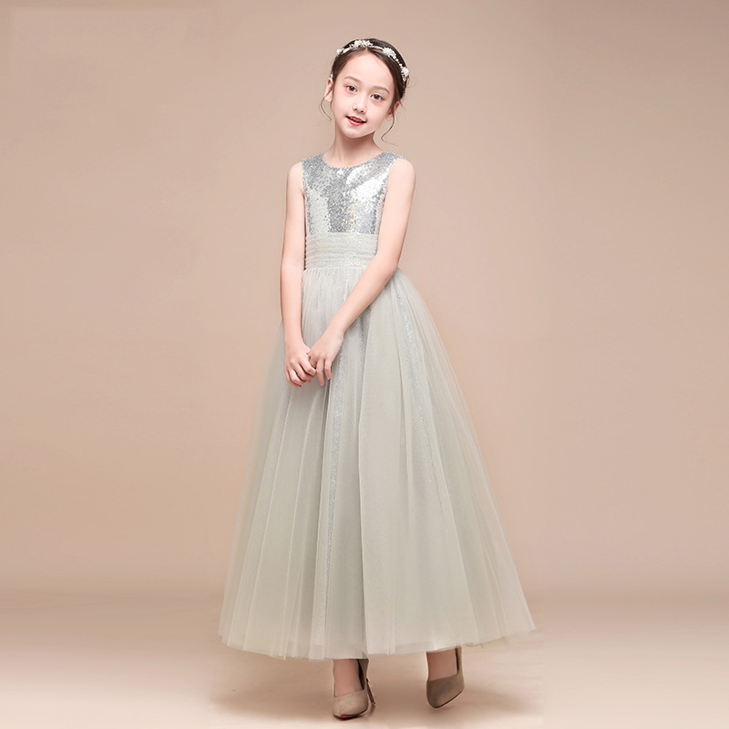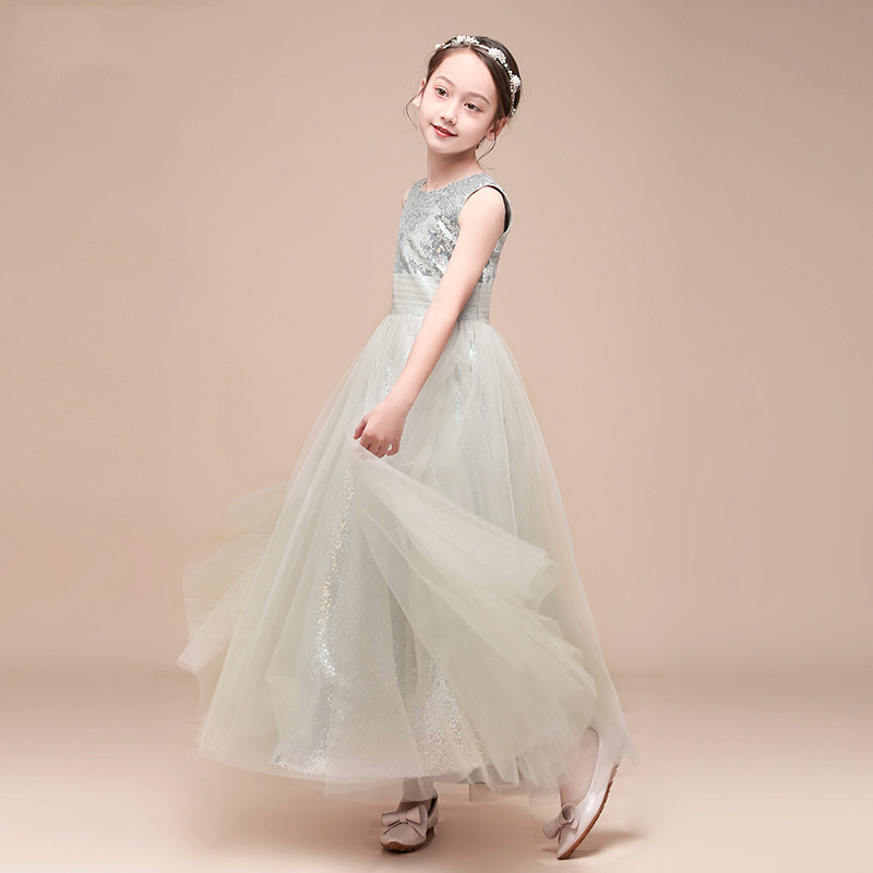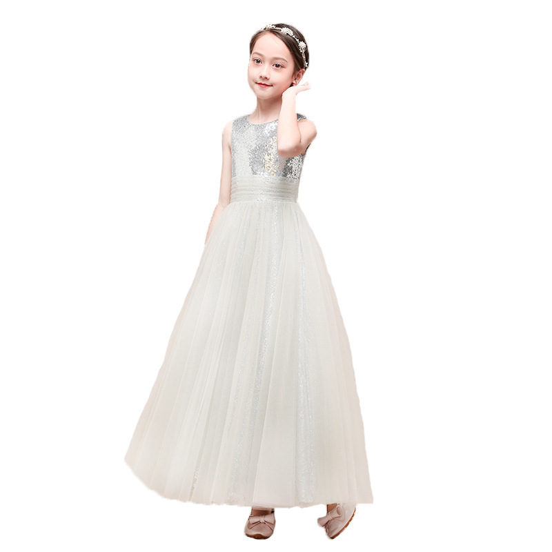 Girls Princess Dress Piano Orchestra Chorus Dress Female Silver Student Year's Day Party Host Children's Performance Clothing